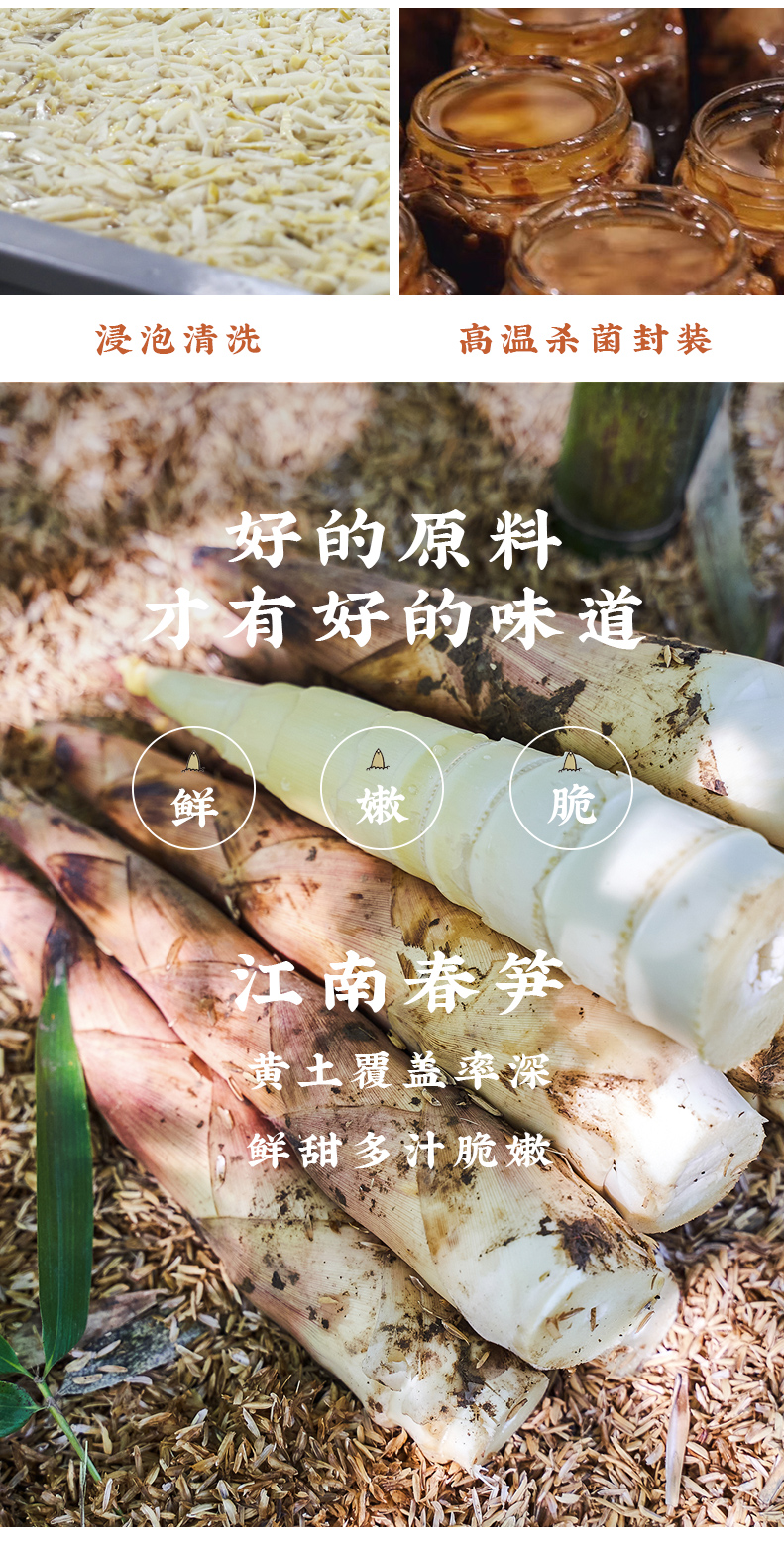 4、高温杀菌装瓶,不添加防腐剂,甚至不加味精,保留笋的鲜味,减少身体钠含量的吸收。