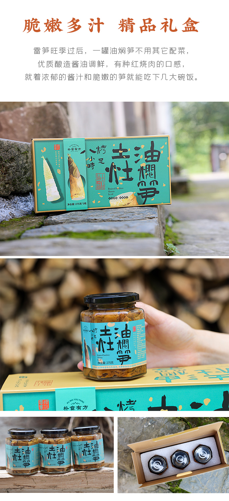 每块笋的制作火候是8个小时,经过时间的历练,味道更加丰满。一道酱汁香浓,鲜嫩十足的油焖笋出锅了,吃出爽脆咸香、意犹未尽。在生产中,不添加任何防腐剂,甚至不加味精,鲜味只来自笋本身,减轻身体对纳含量的吸收。