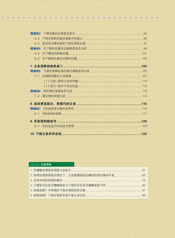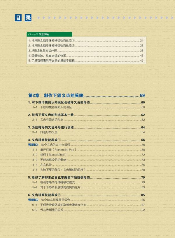 全口义齿临床实践的入门读物 提出全口义齿修复的17条原则 探讨了全口义齿的制作、安装和调整 讲述了全口义齿应该具备的形态和制作要素 以临床实际为基础,以简单、重视优先顺序为前提