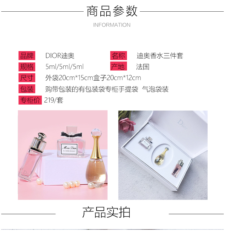 迪奥香水小样礼盒 红色/白色/银色 5ml*3