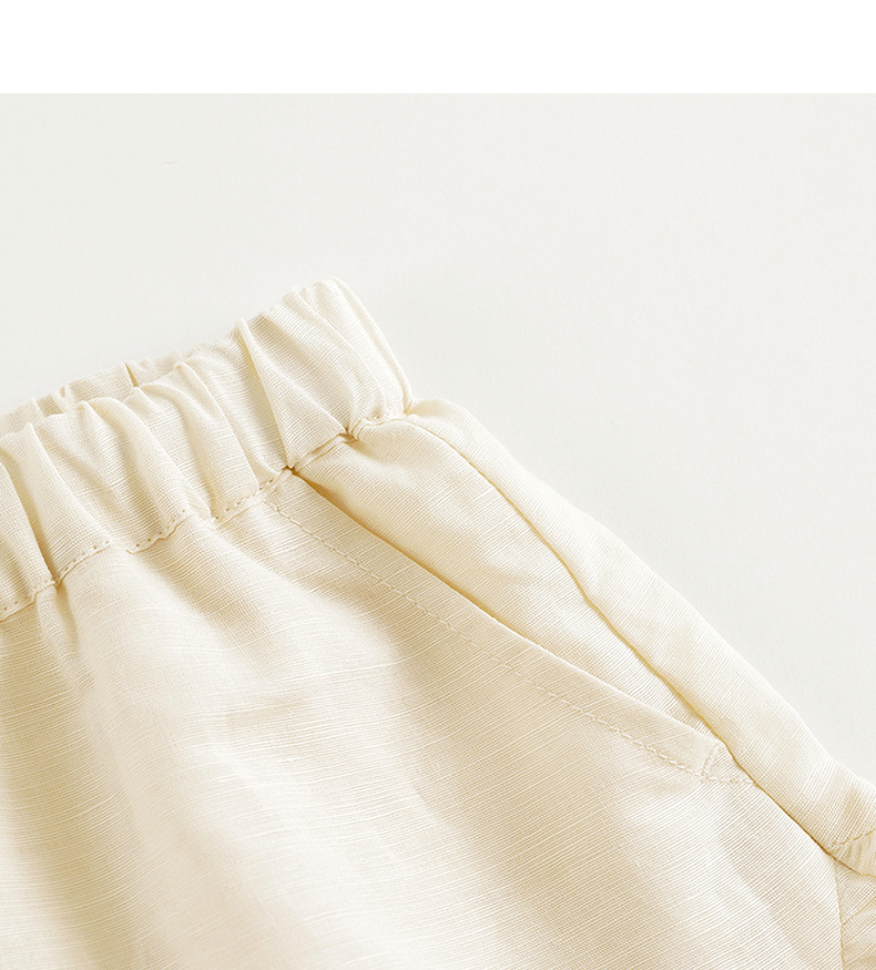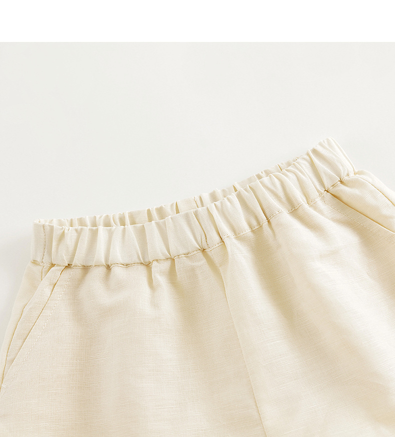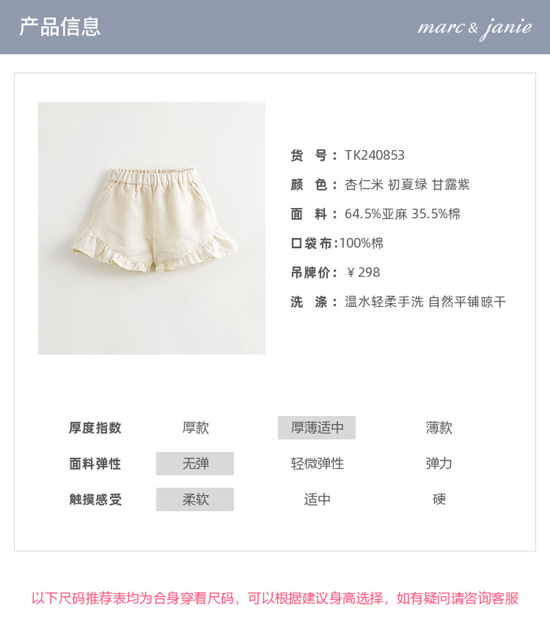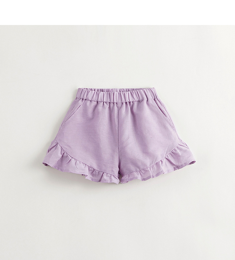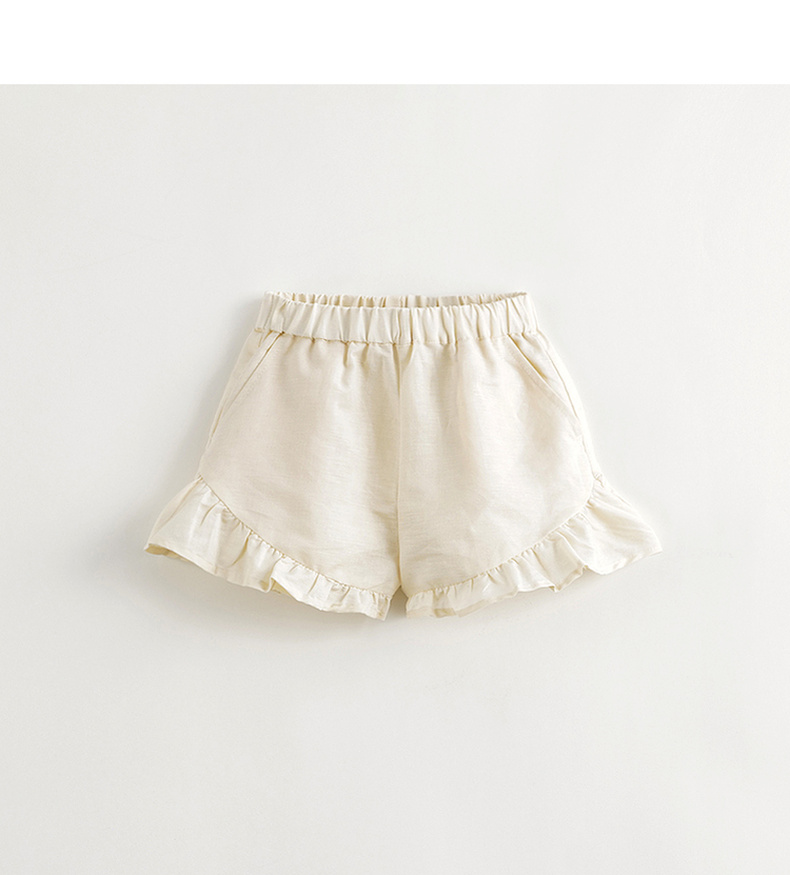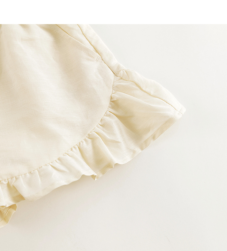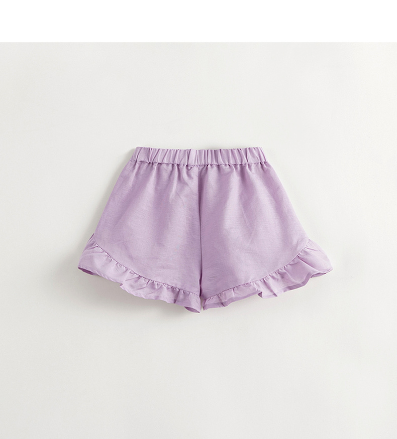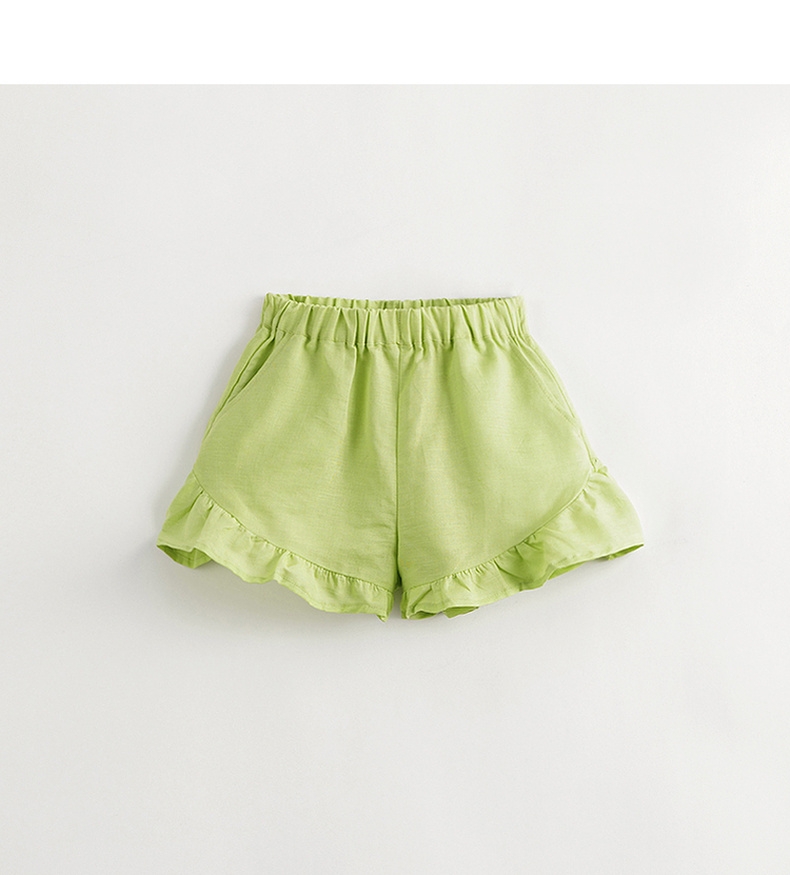 马克珍妮女童法式拼接荷叶边棉麻短裤儿童裤子2024夏装新款240853