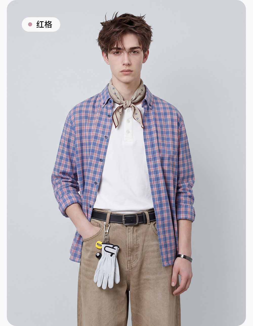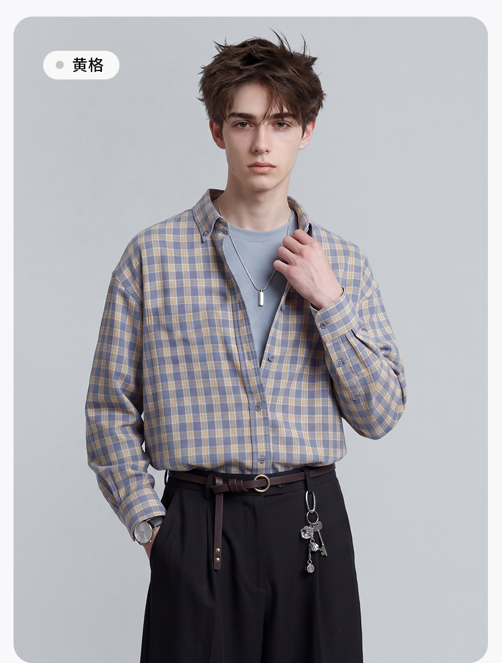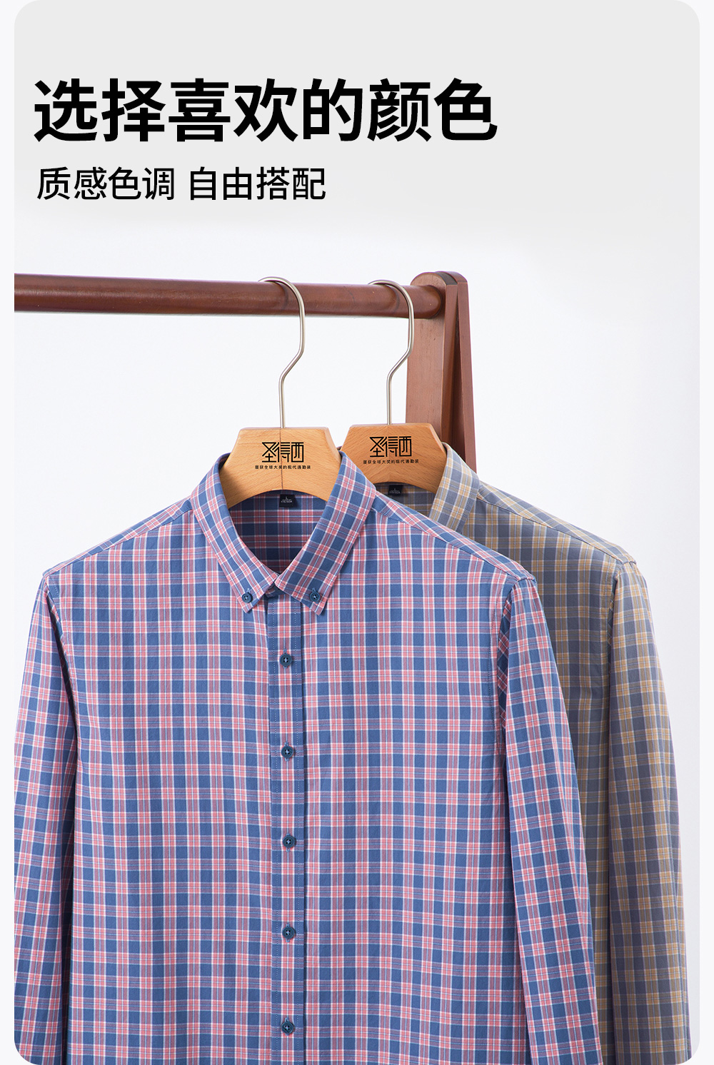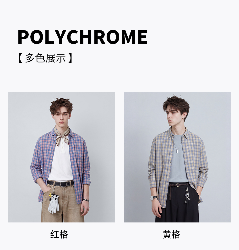 【含棉】圣得西男士格子长袖衬衫2026新款春季亲肤透气休闲风上衣