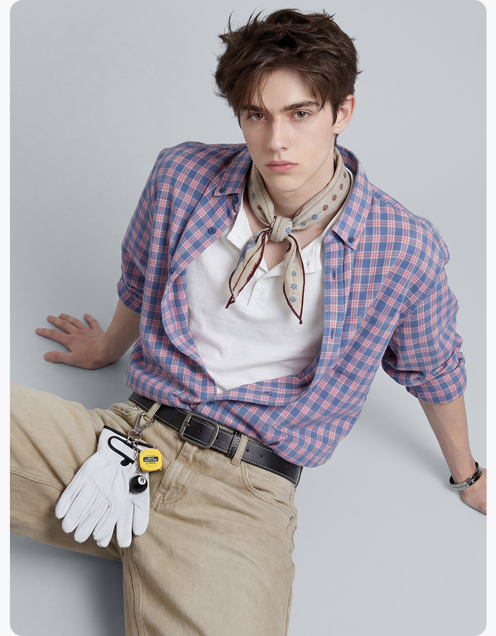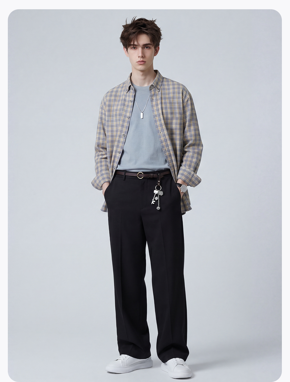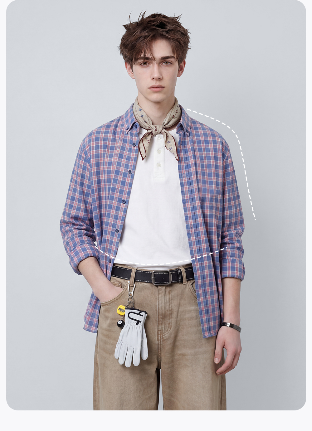 【含棉】圣得西男士格子长袖衬衫2026新款春季亲肤透气休闲风上衣