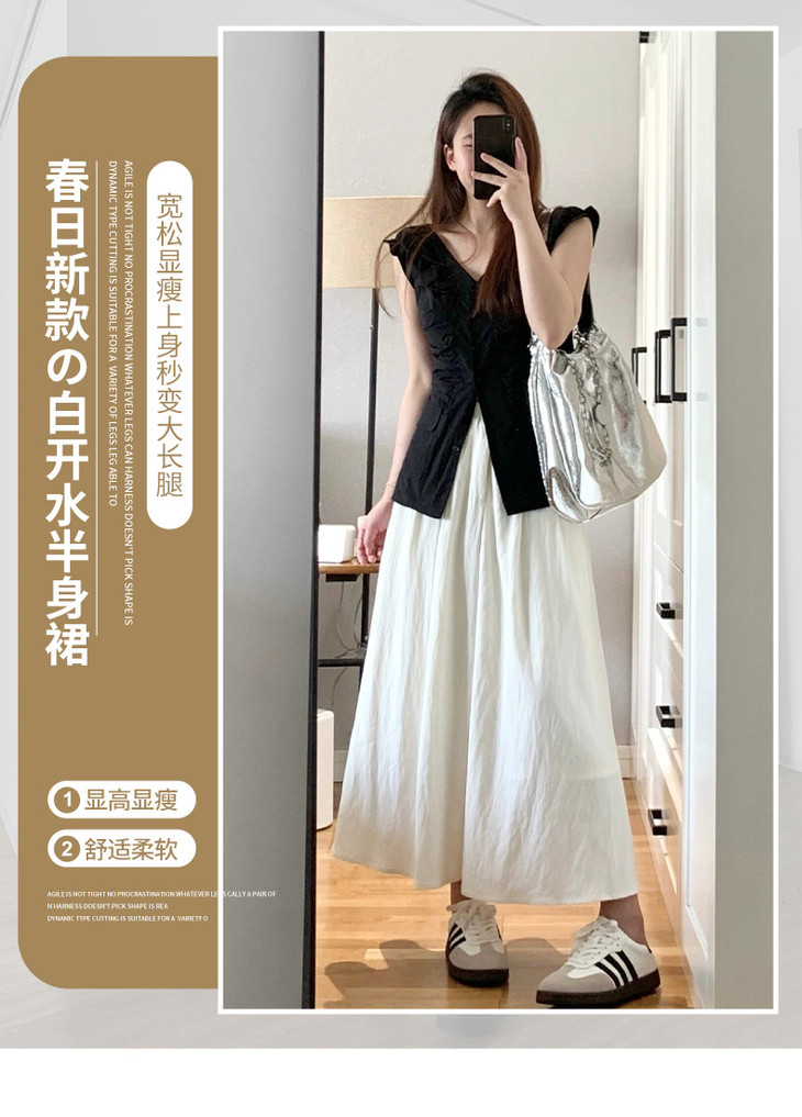 【小个子蓬蓬百褶裙】白色半身裙女夏季新款高腰a字显瘦中长款
