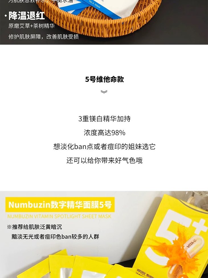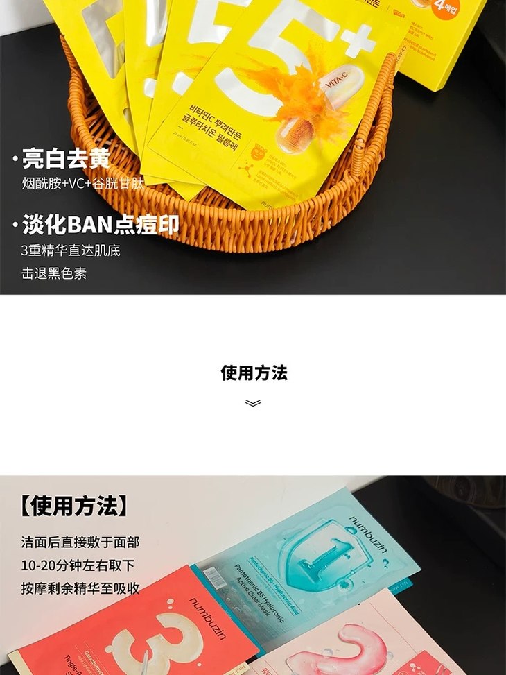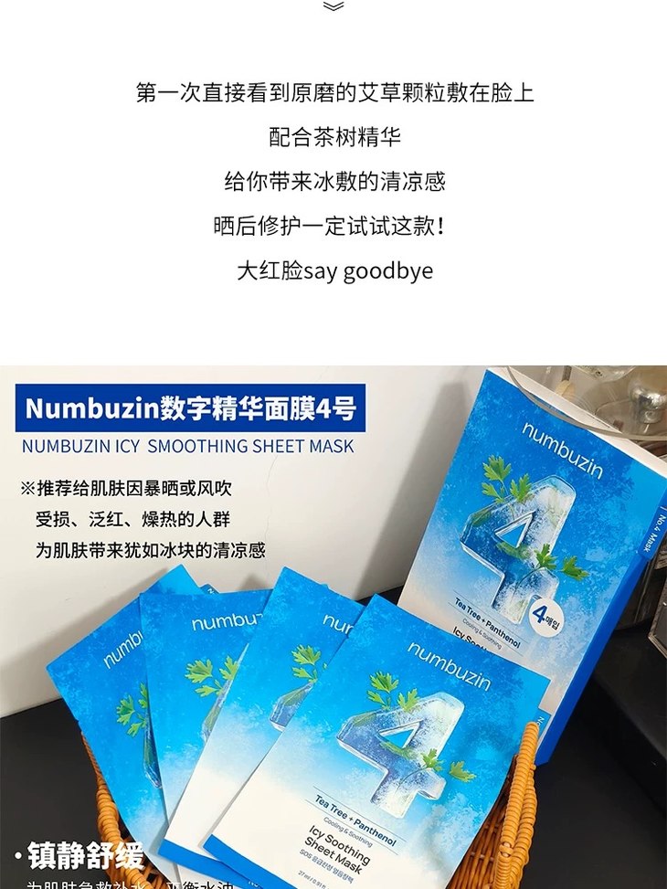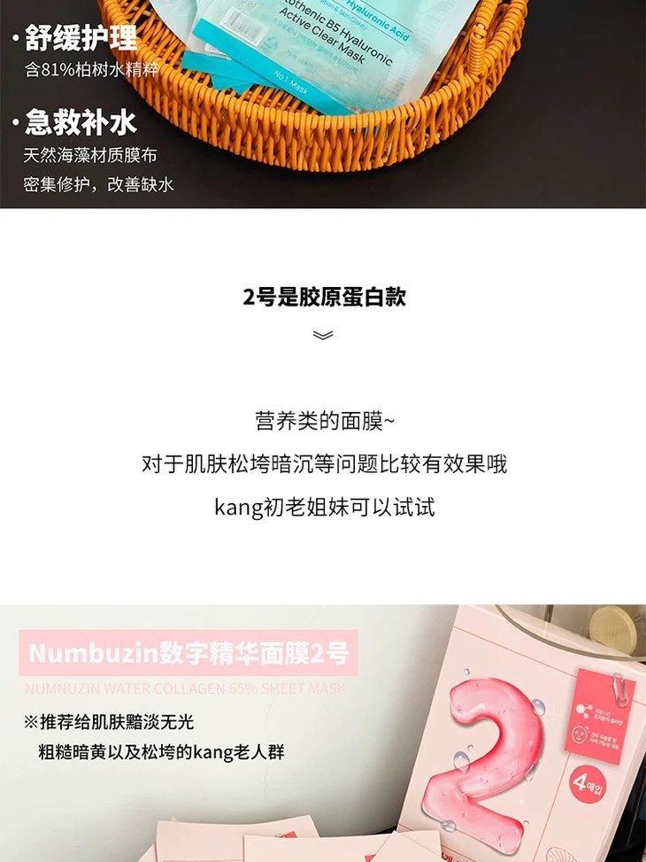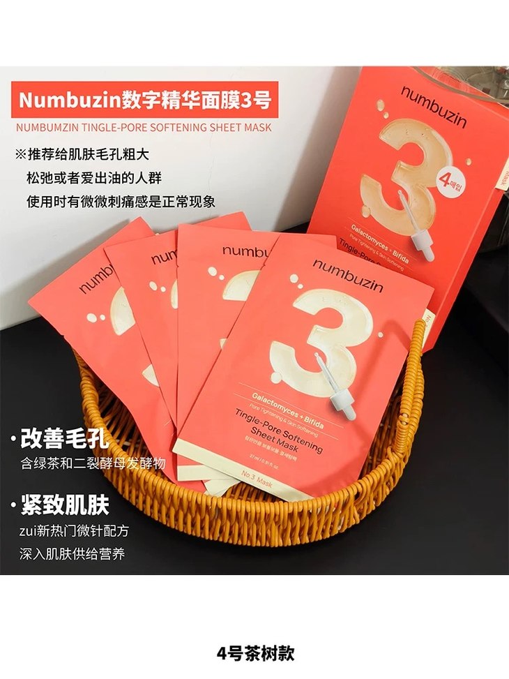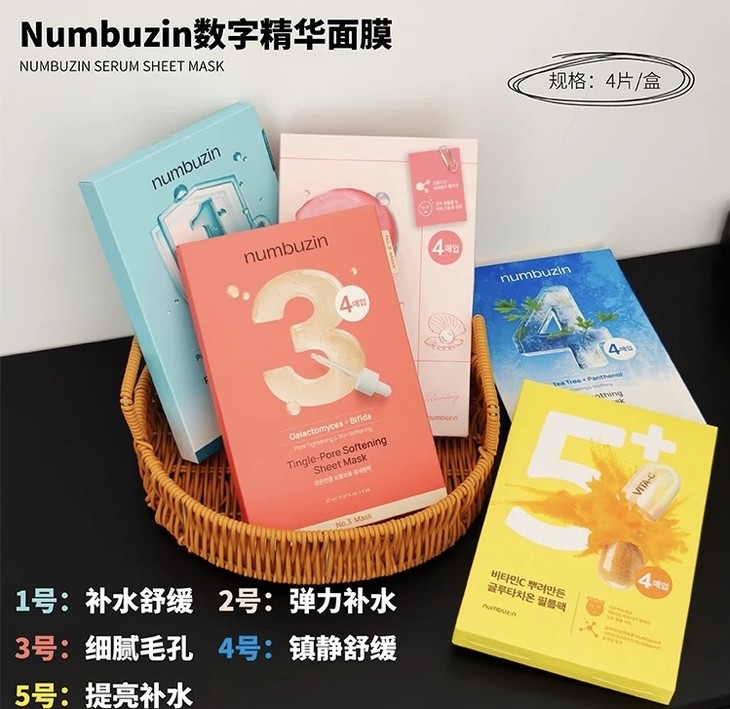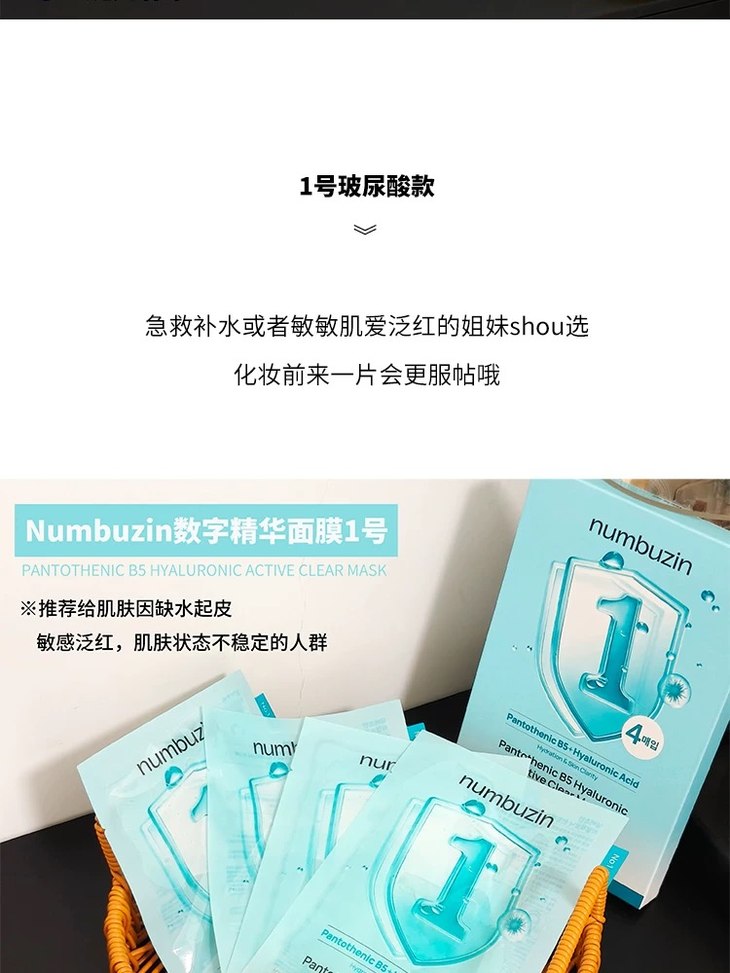 oliveyoung热卖!韩国numbuzin数字精华面膜补水保湿提亮舒缓4片