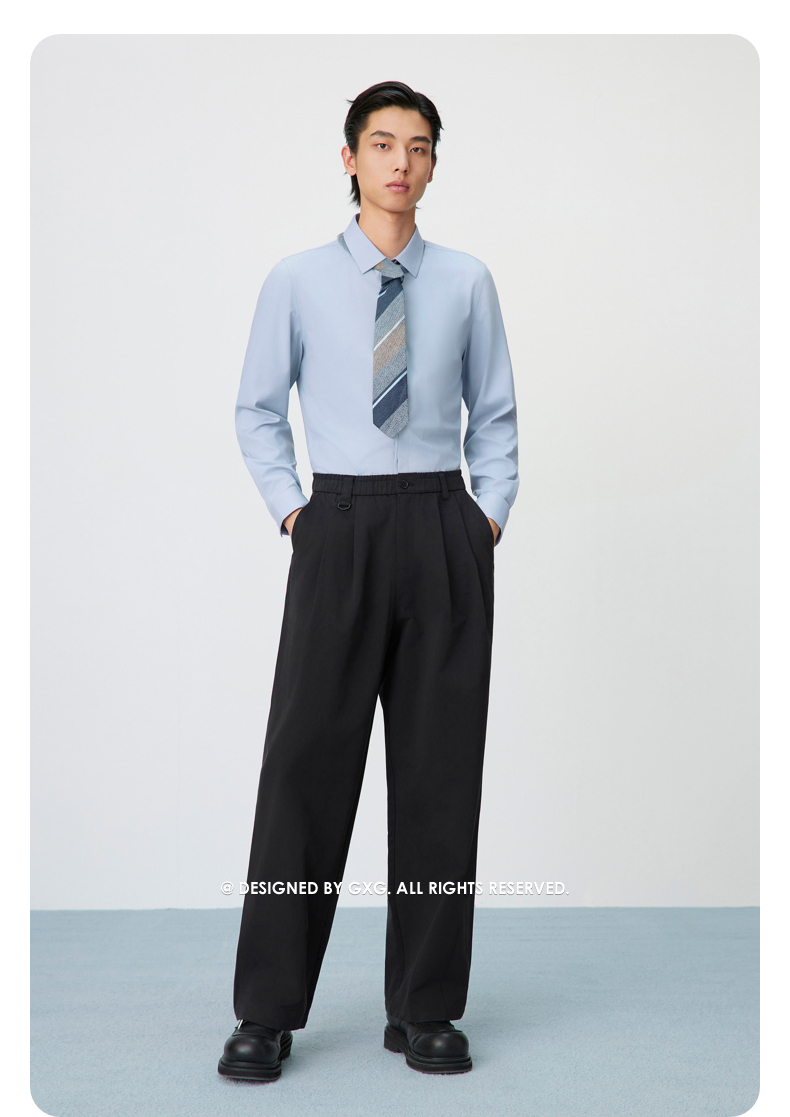 GXG男装 棉质宽松阔腿休闲裤男双褶挺括休闲裤通勤长裤 25春热卖