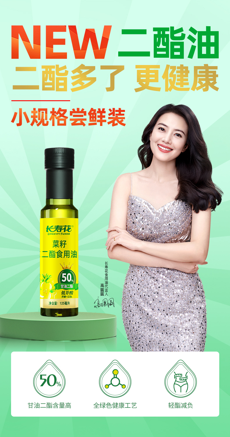 长寿花轻酯甘油二酯食用油40%DAG含量 500ml低芥酸菜籽二酯油