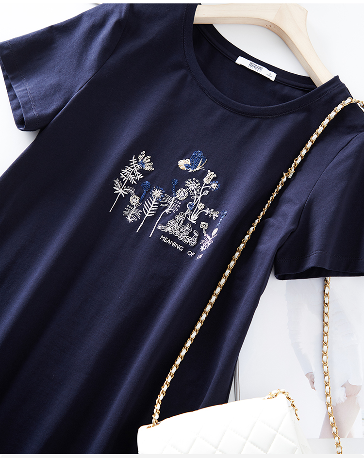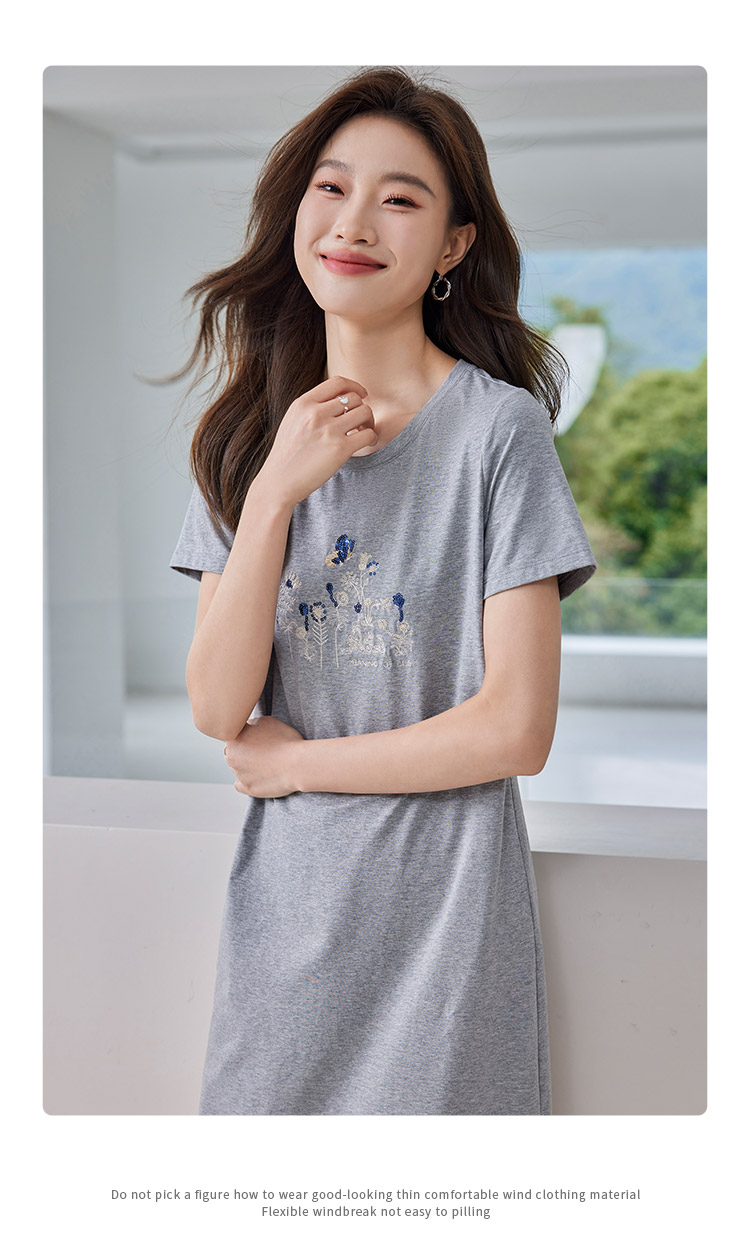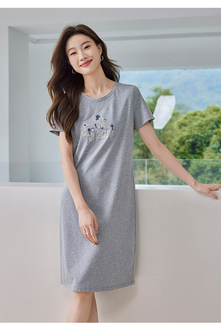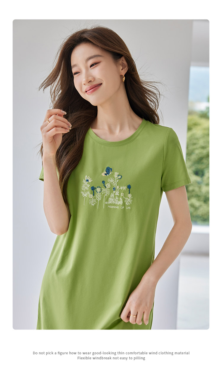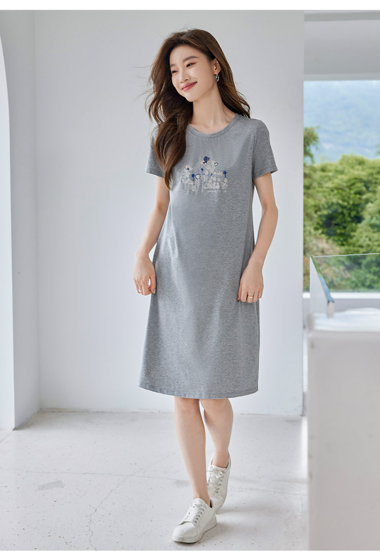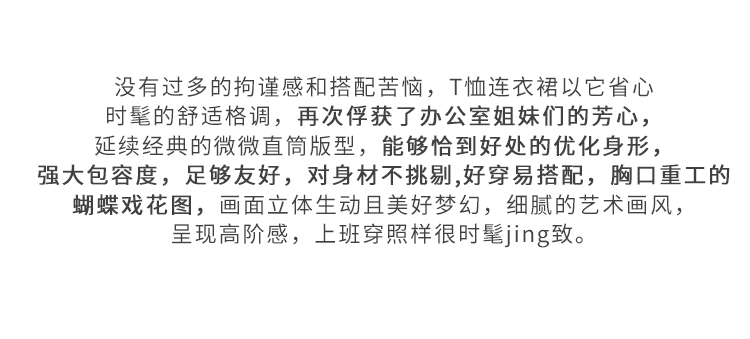 【五折购】熙世界夏装新款重工蝴蝶戏花图中长T恤直筒连衣裙女宽松裙子
