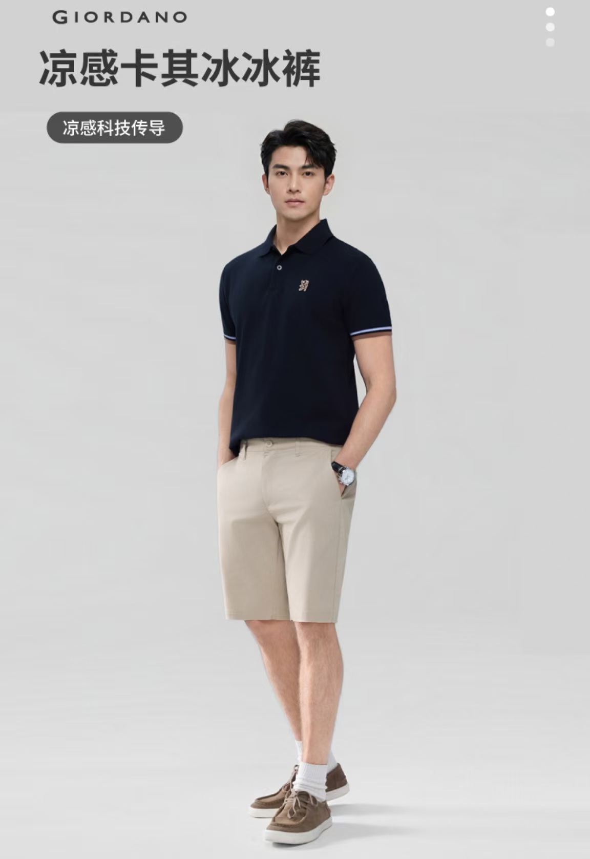 佐丹奴男装26年商场新款春夏凉感卡其短裤冰冰裤01106218