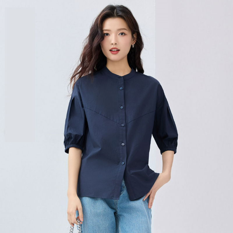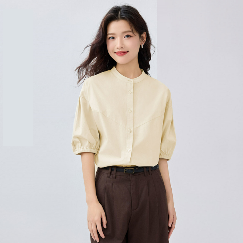 佐丹奴25年新款女装纯棉府绸小立领破骨泡泡中袖梭织衬衫13345311