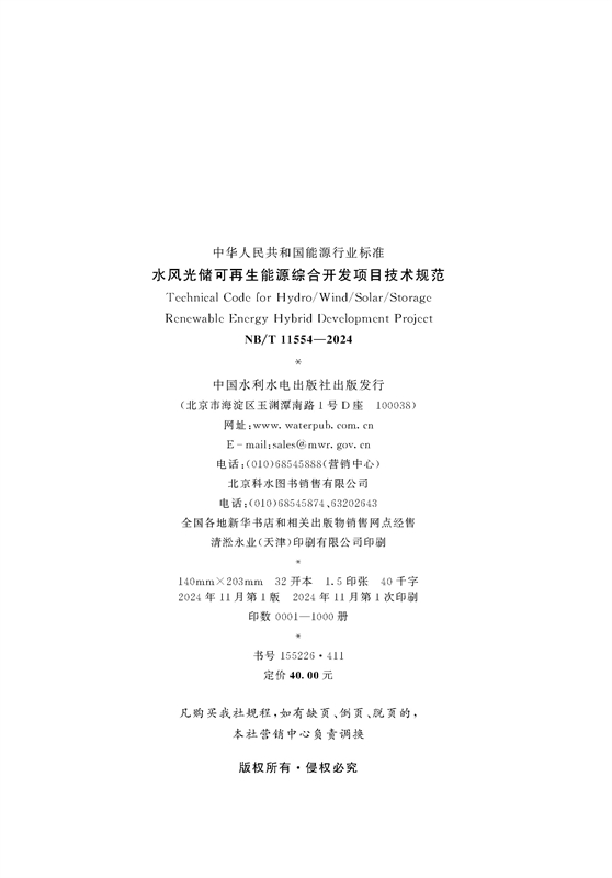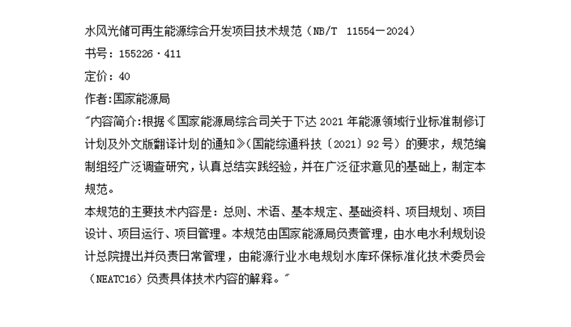水风光储可再生能源综合开发项目技术规范(NB/T 11554—2024)
