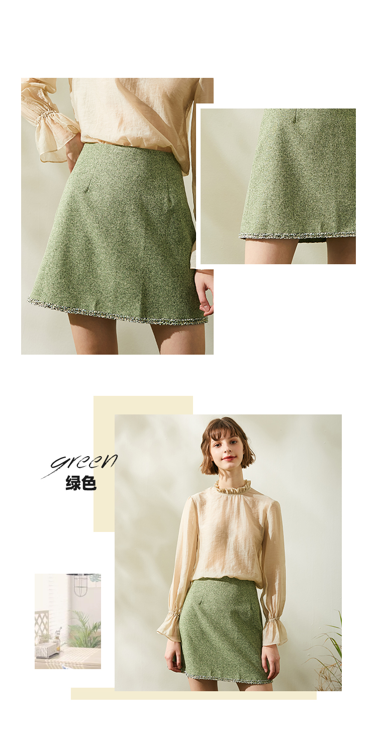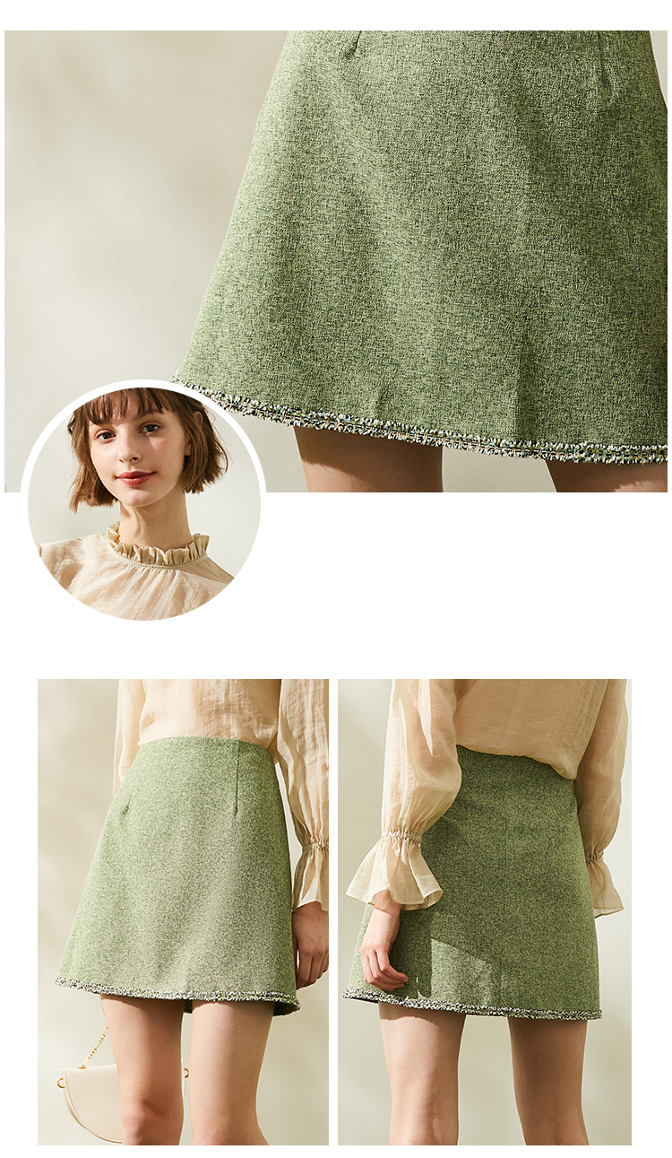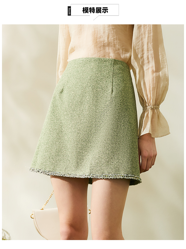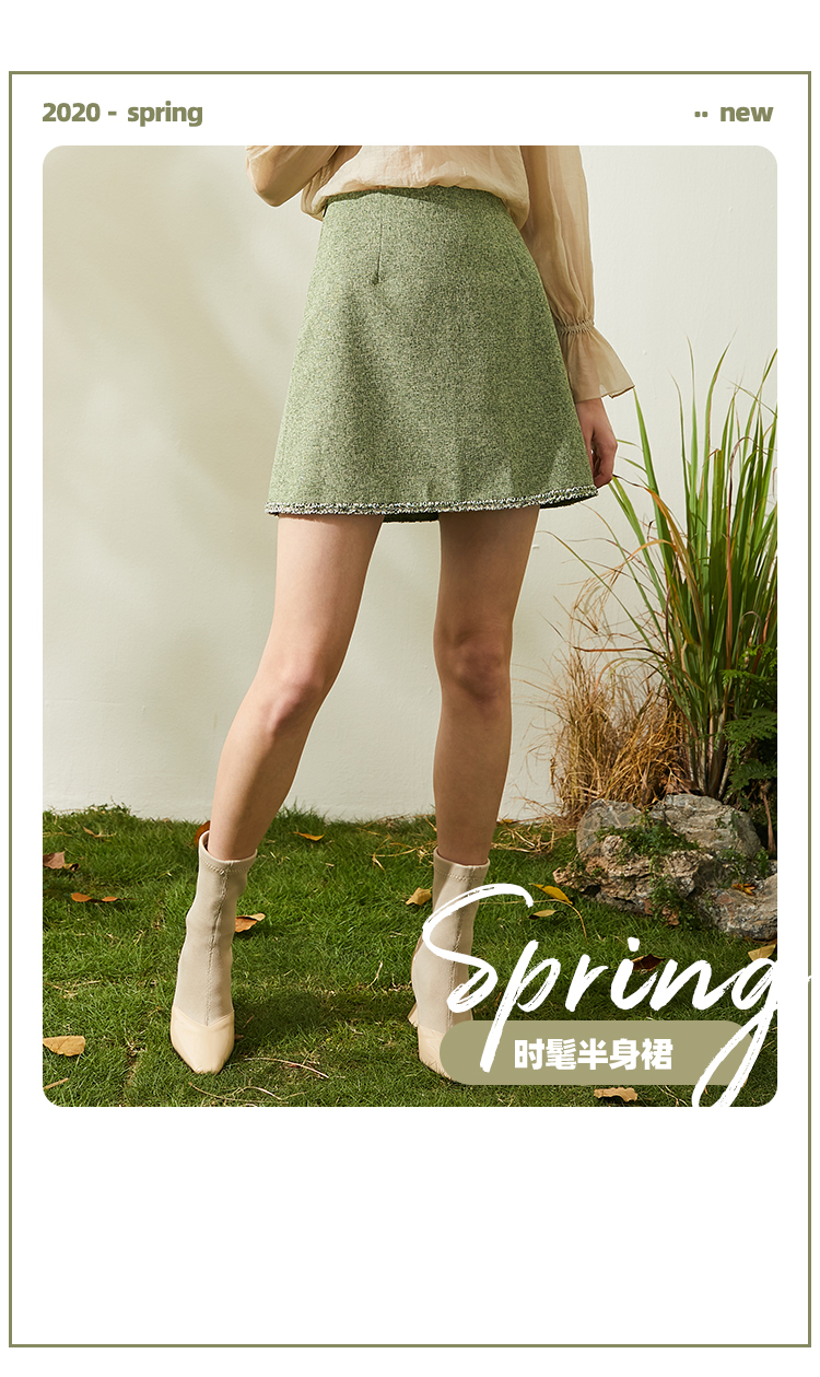欧芮儿春新款高腰显瘦半身裙女绿色短裙修身复古百搭包臀裙