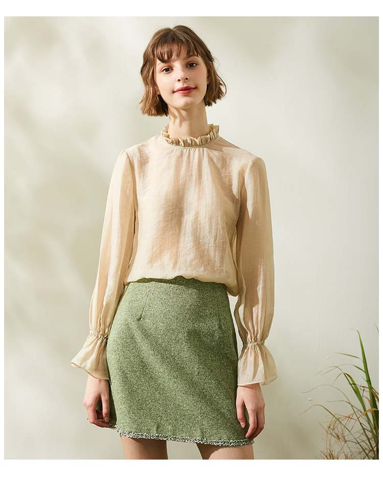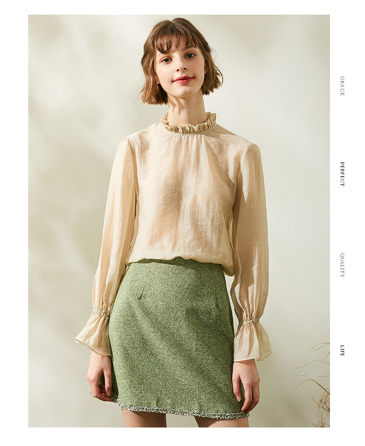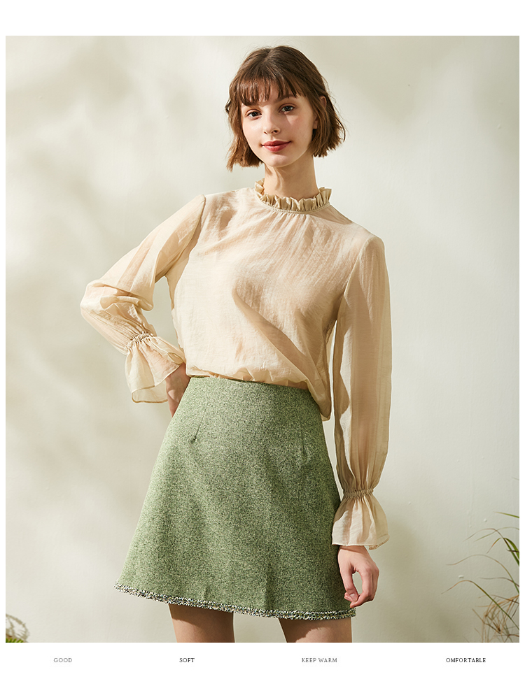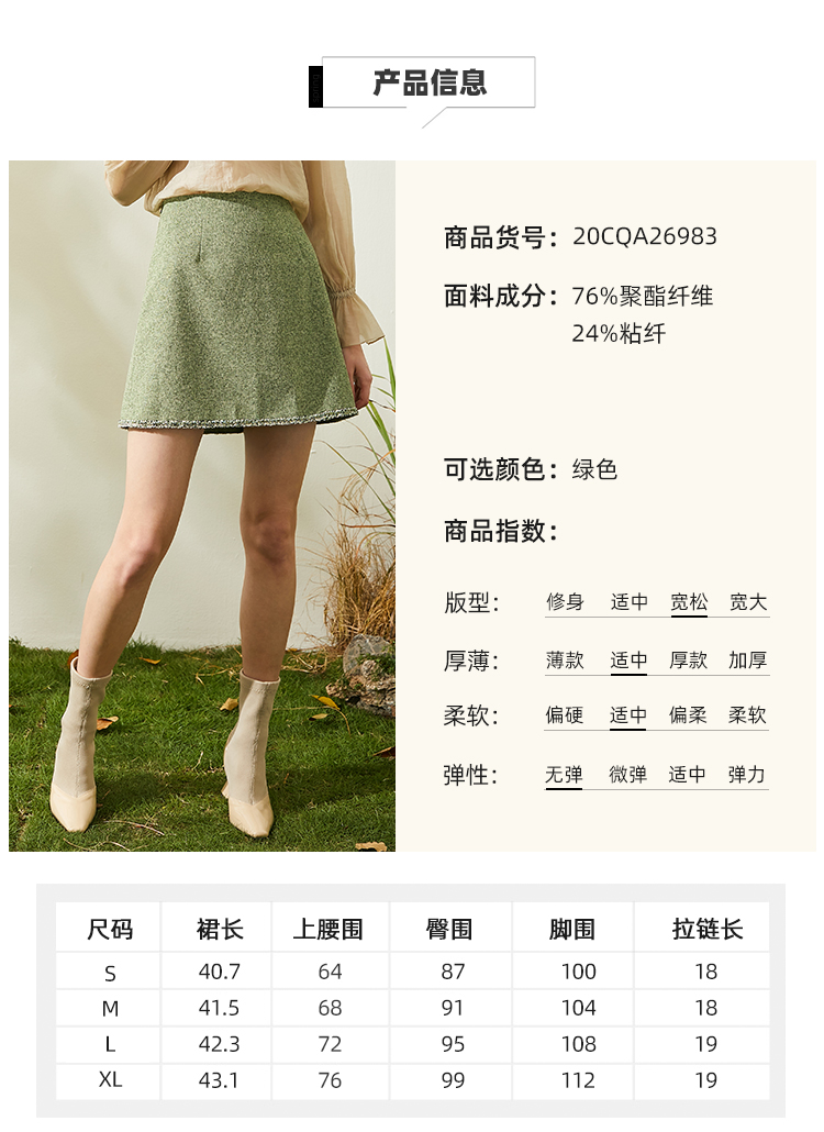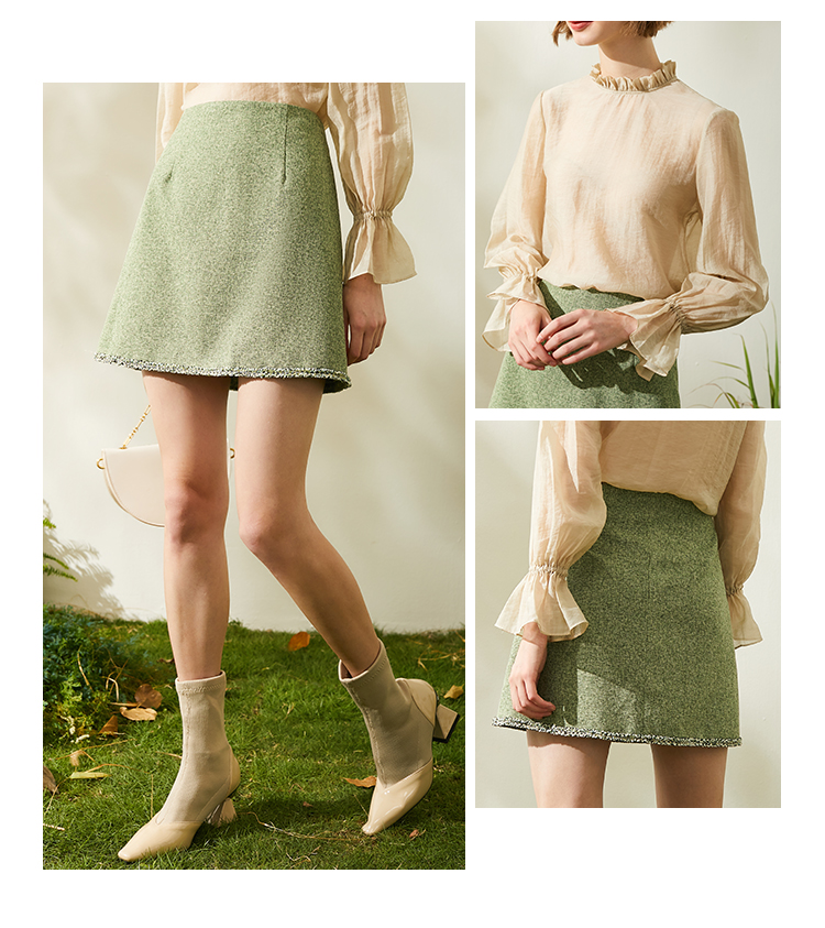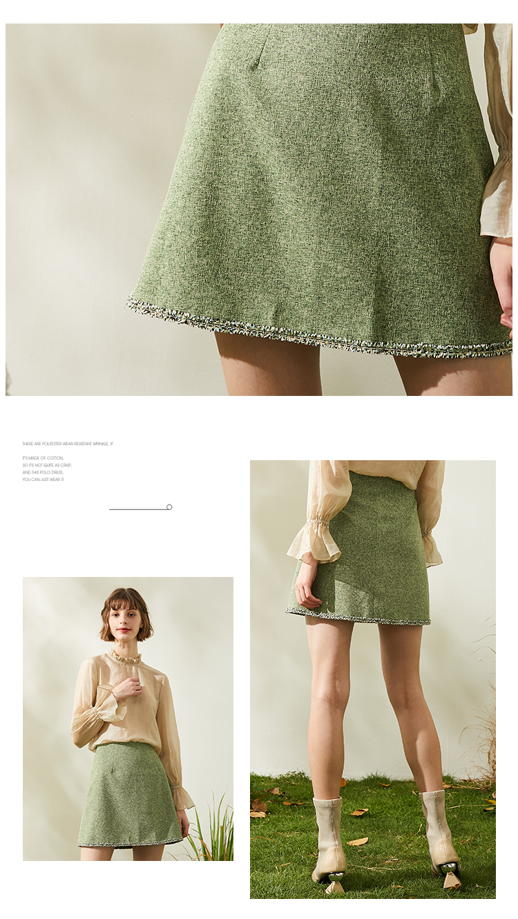 欧芮儿春新款高腰显瘦半身裙女绿色短裙修身复古百搭包臀裙