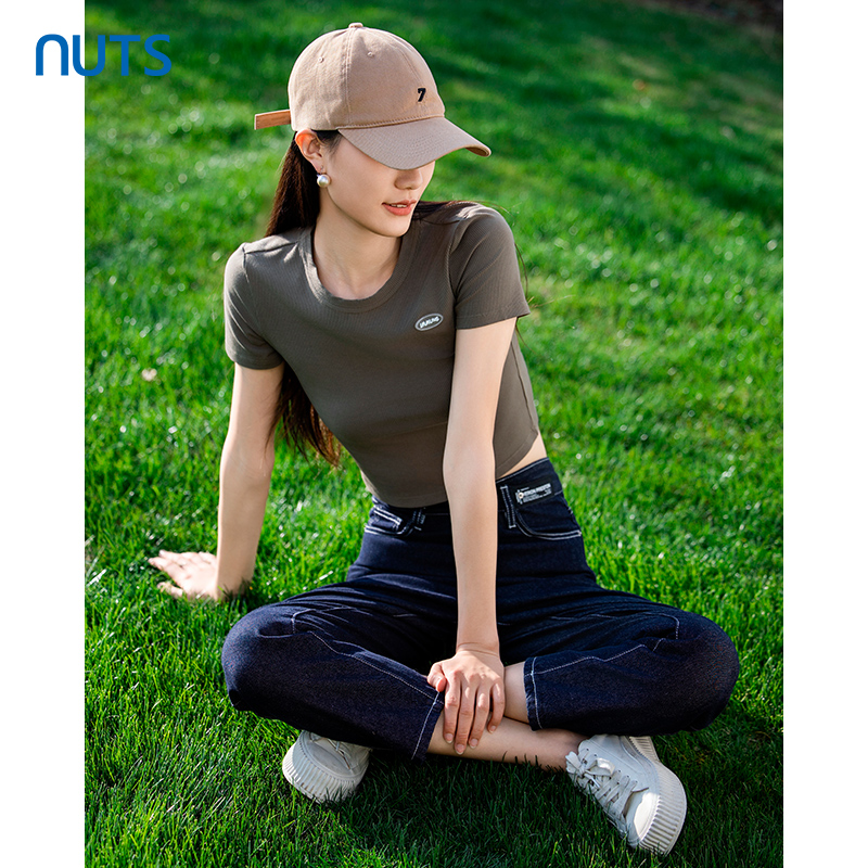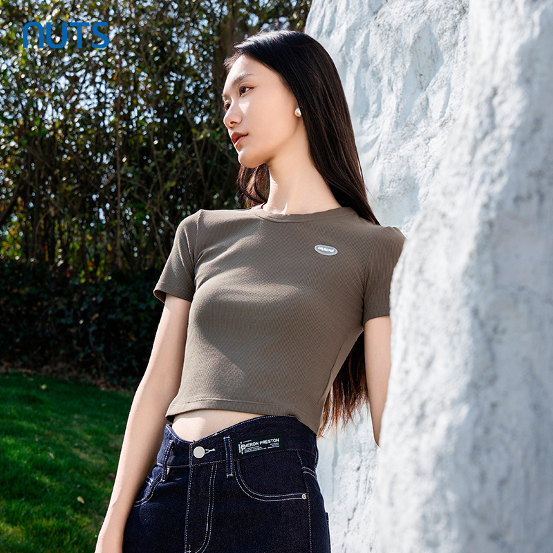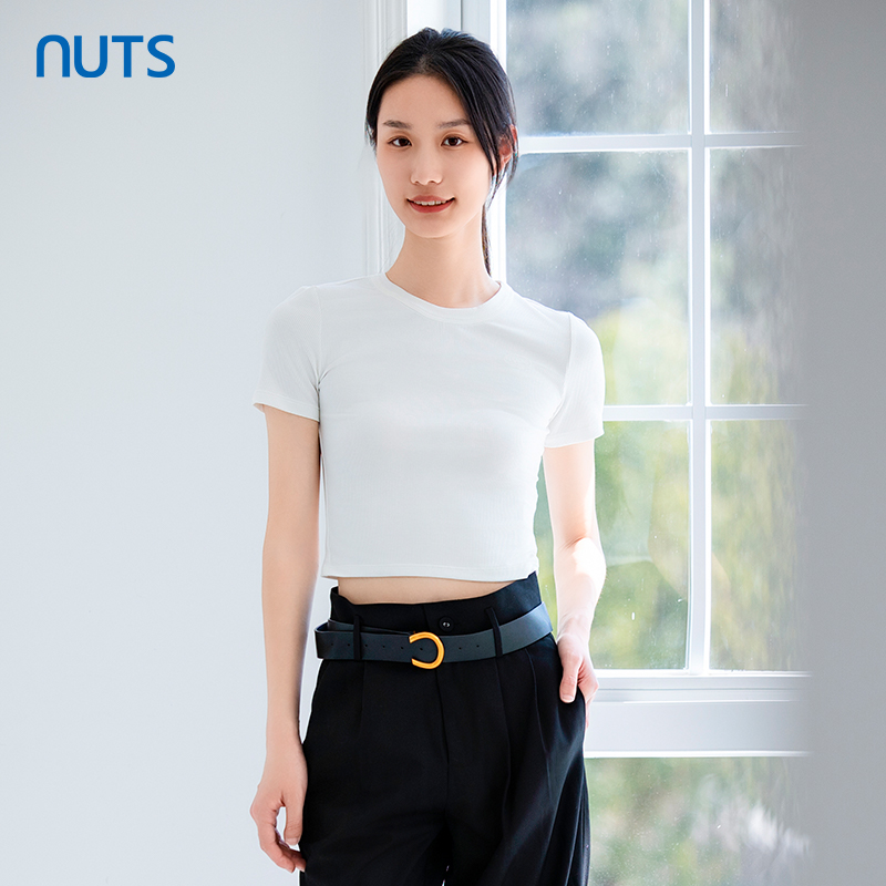 NUTS春季新品时尚纯色圆领气质百搭通勤短袖T恤422021041