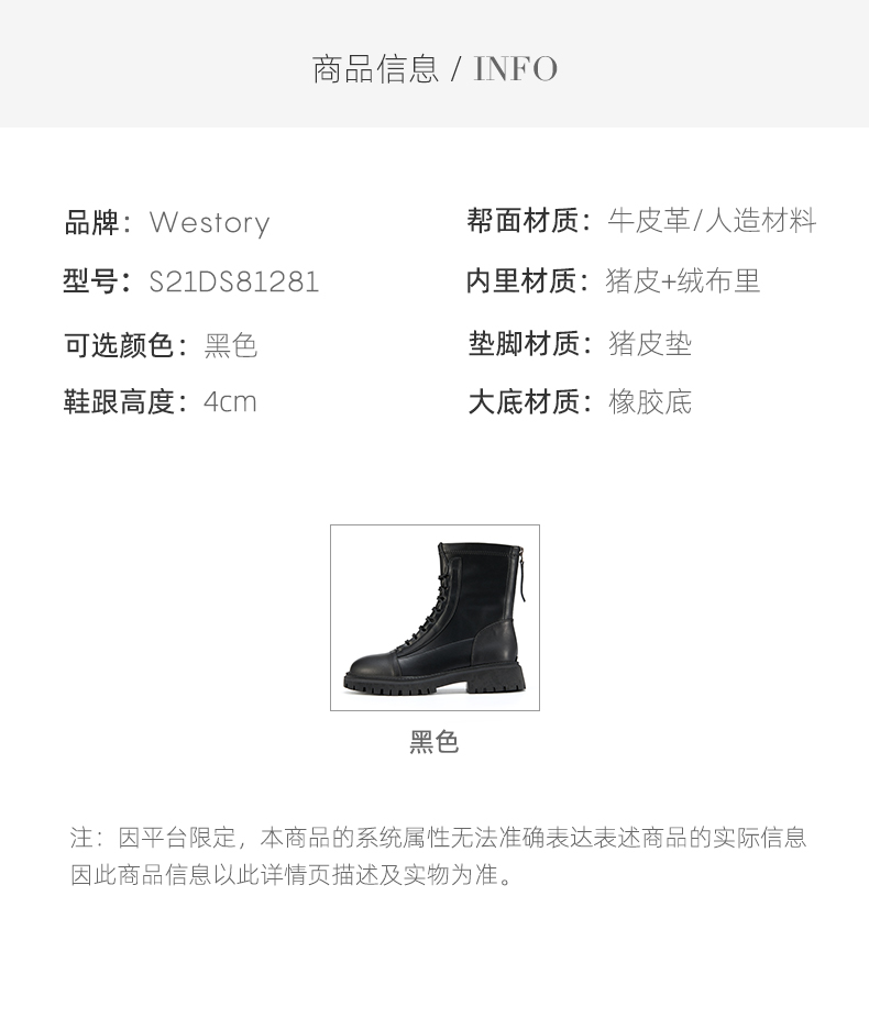 westory2021秋季新款英伦风系带短靴潮流时尚S21DS81281
