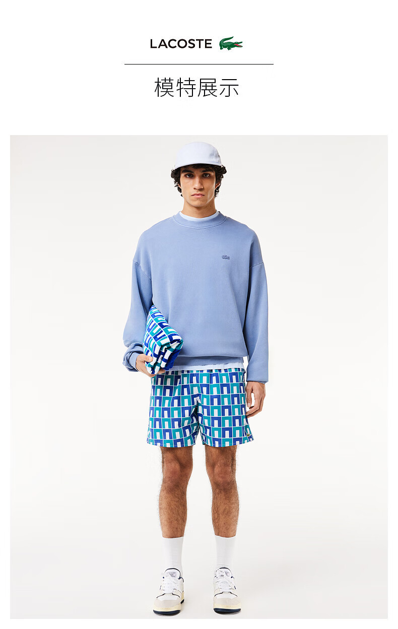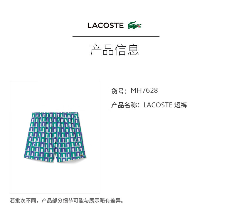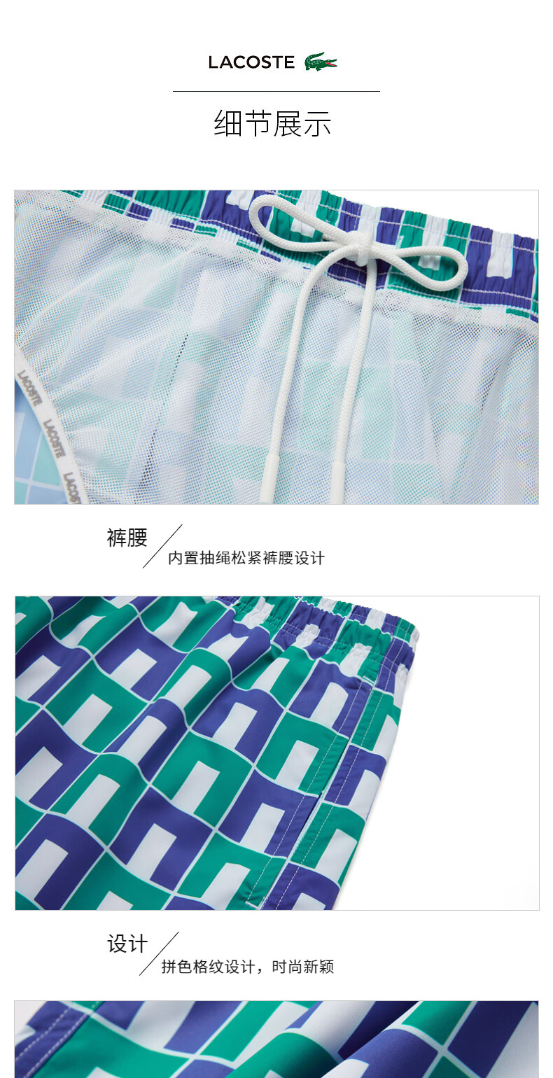 【海南专供价】Lacoste法国鳄鱼男装新款拼色格纹短裤时尚运动短裤MH7628-10