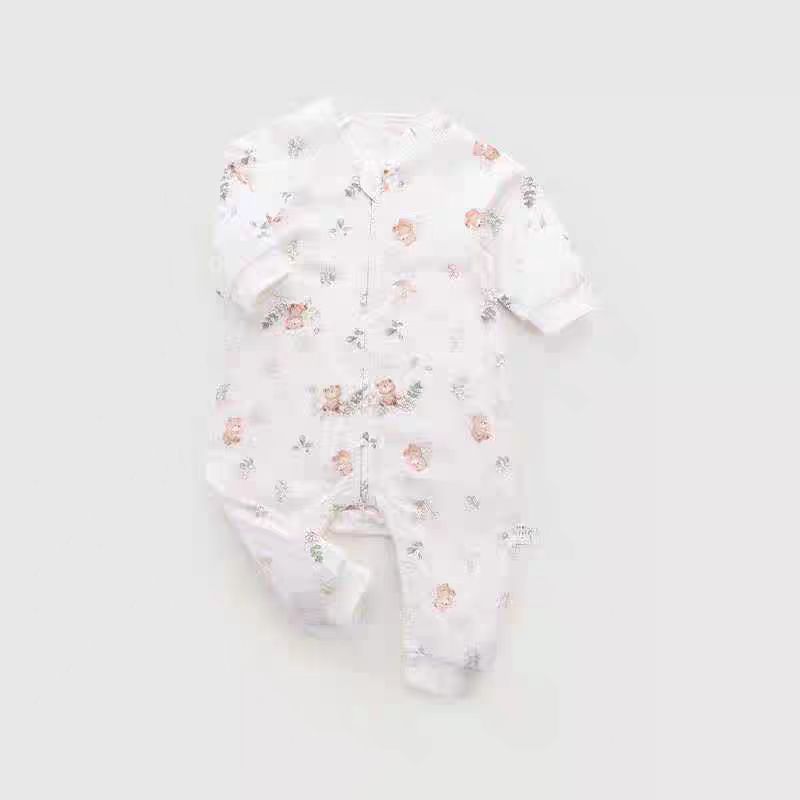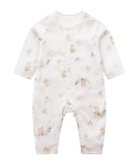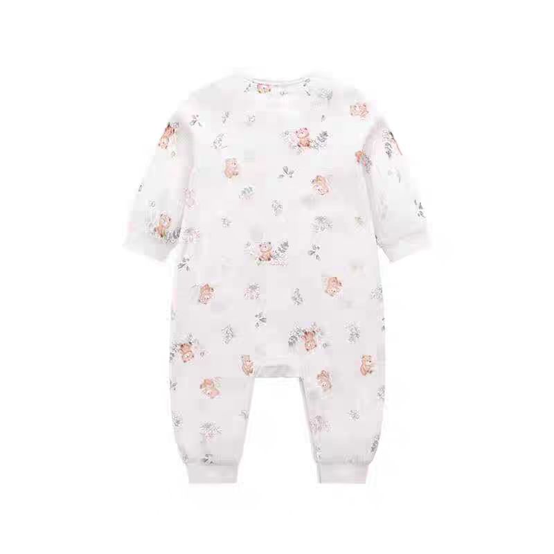 拉比-内衣类(夏)I5小熊纱布全开连体衣米白059