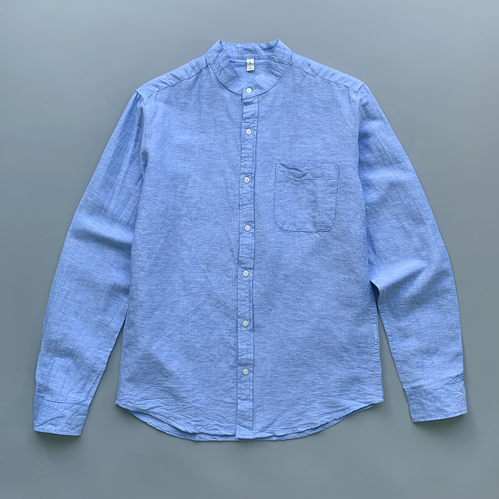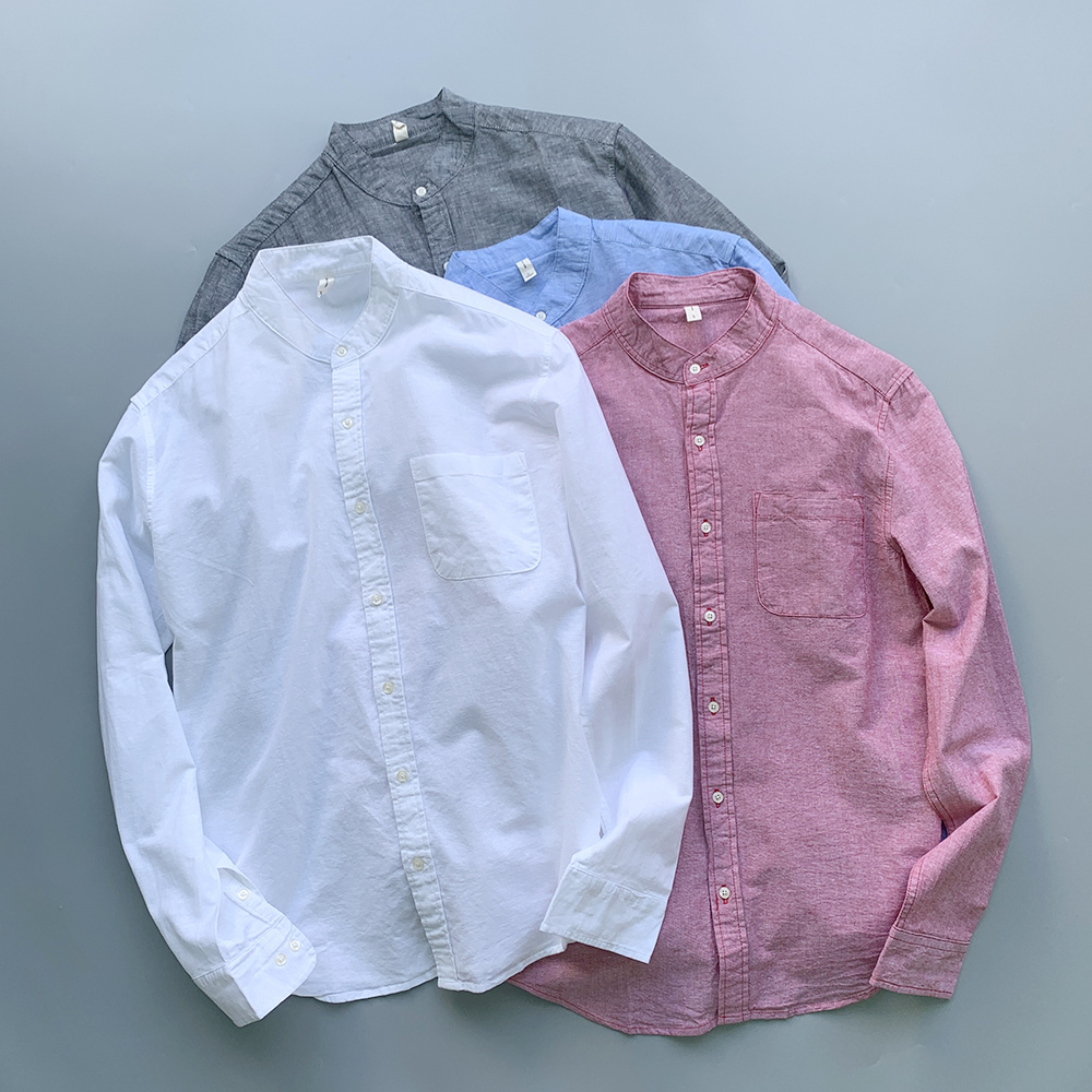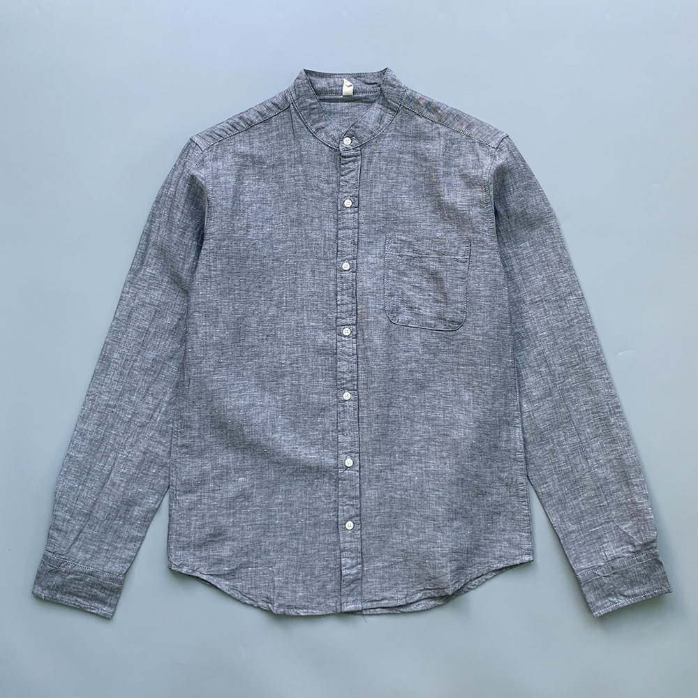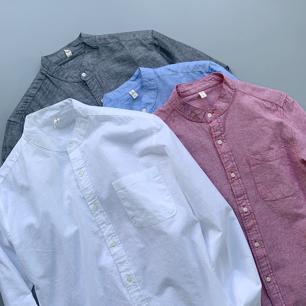 下单详情 【品牌】千吉娜Chigina 【品名】男士立领棉麻衬衫 【材质】55%亚麻45%棉 【颜色】蓝色、灰色、白色、红色 【尺码】M—3XL码