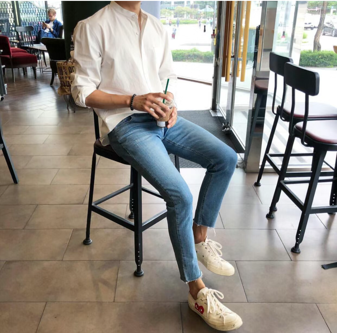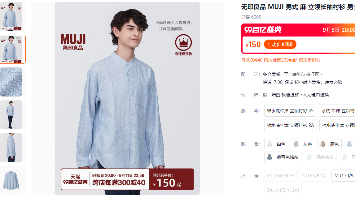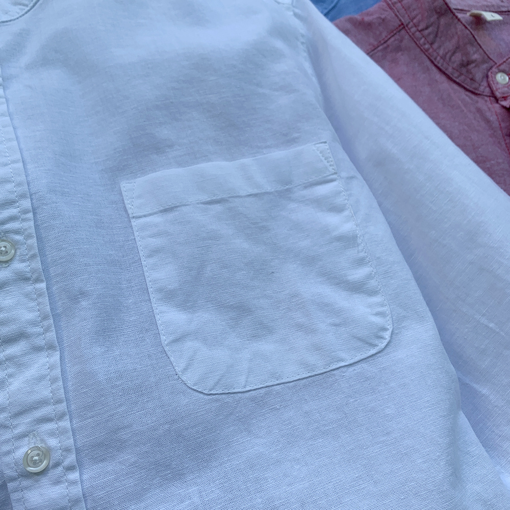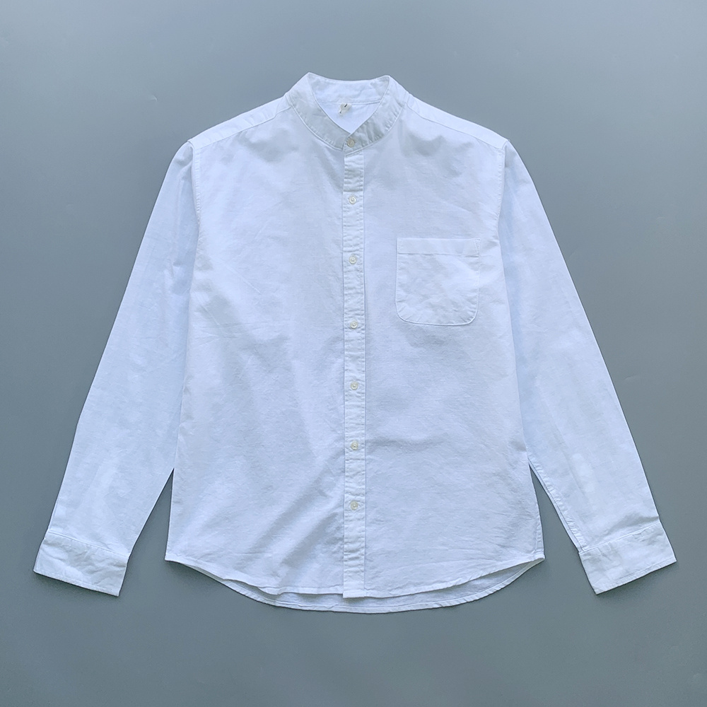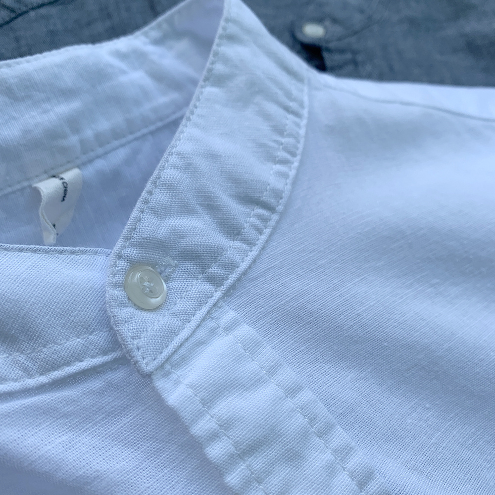 下单详情 【品牌】千吉娜Chigina 【品名】男士立领棉麻衬衫 【材质】55%亚麻45%棉 【颜色】蓝色、灰色、白色、红色 【尺码】M—3XL码