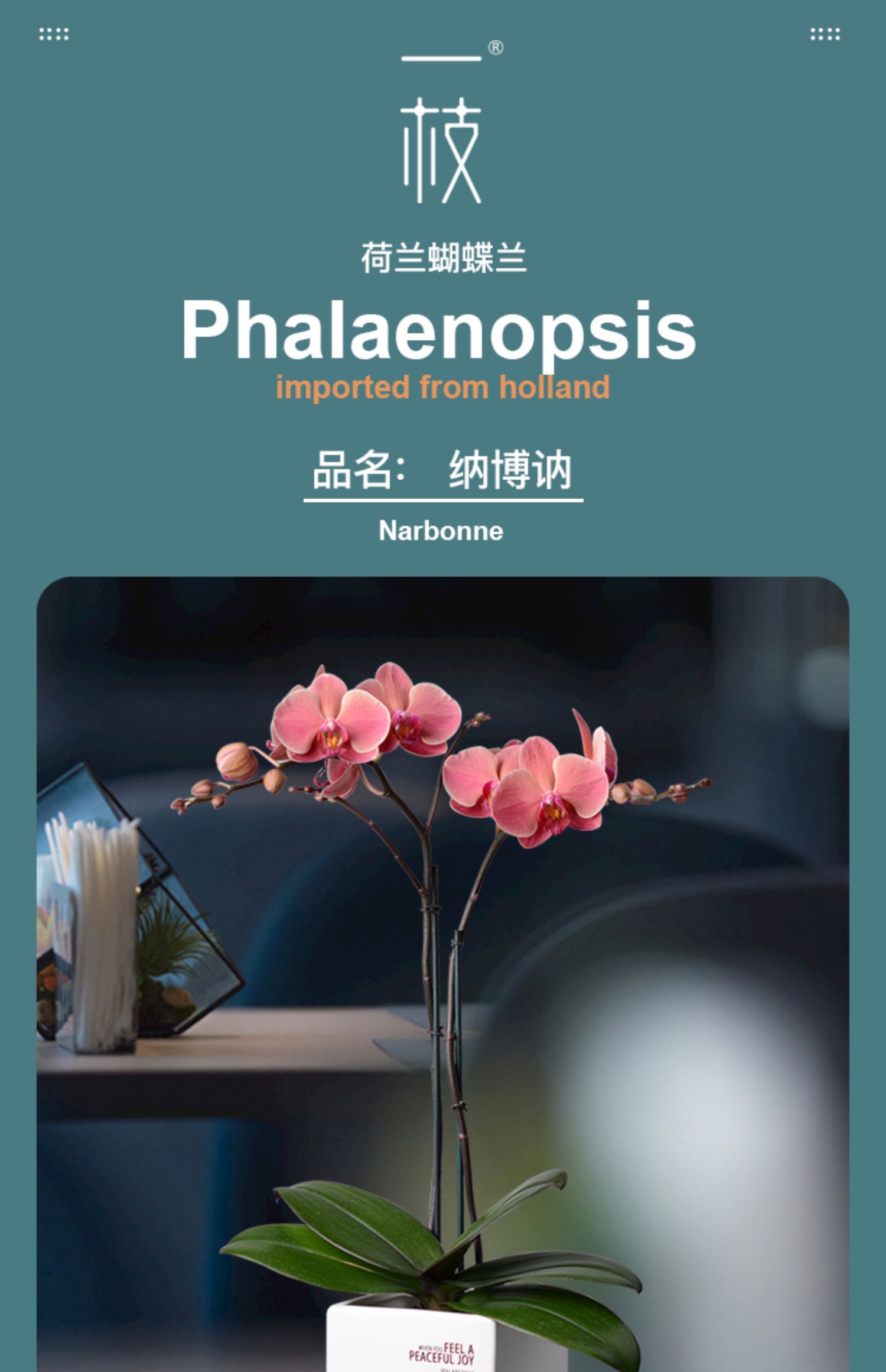 一枝纳博讷 荷兰蝴蝶兰带花盆栽植物 椰块栽培无病菌感染