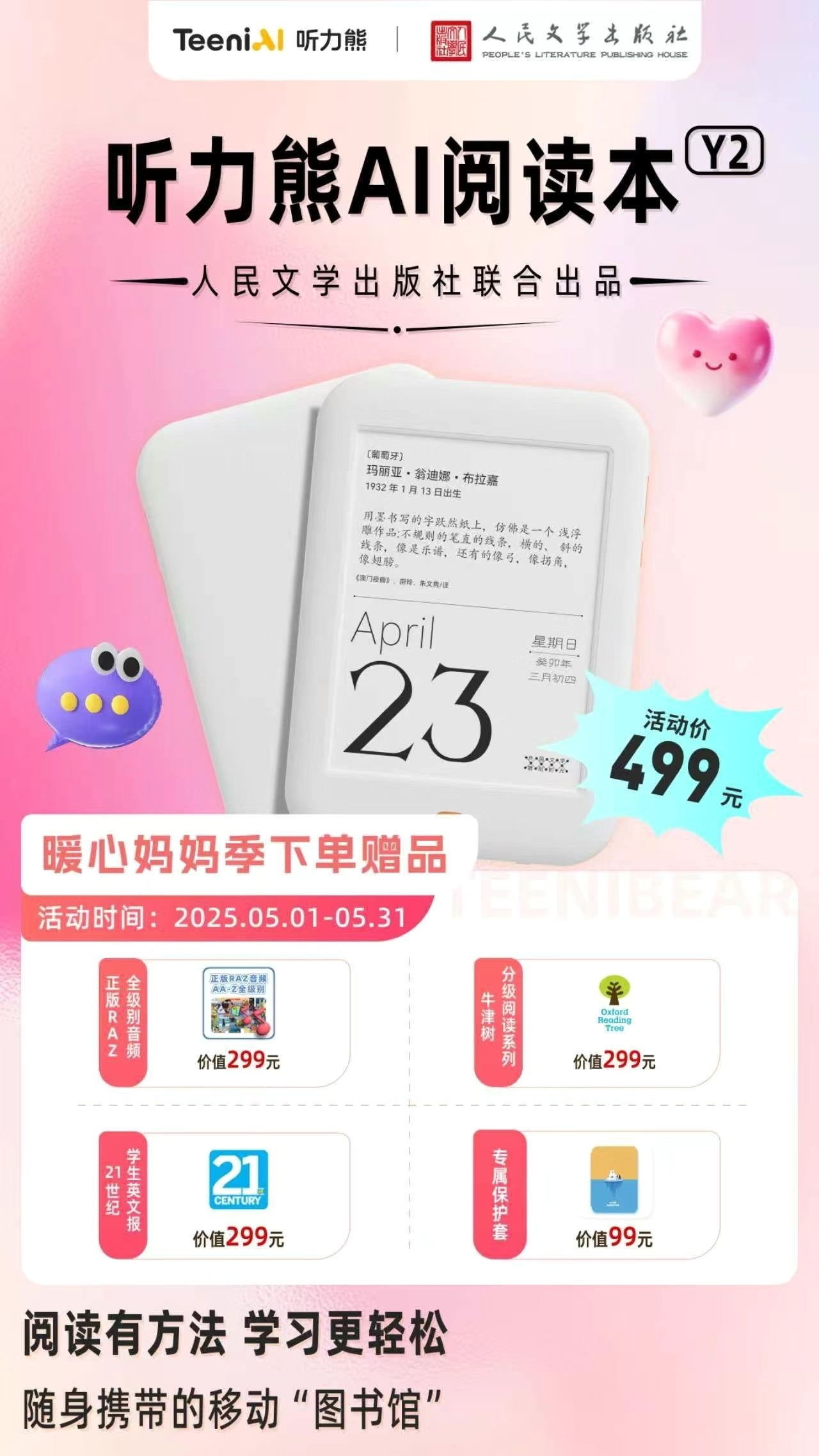 听力熊 AI阅读学习机 墨水屏孩子学习必备神器 乐学季赠送