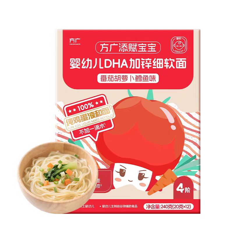 方广240g添赋宝宝婴幼儿DHA加锌细软面、加铁颗粒面、双蛋白蝴蝶面FAG-726264/FAG-726240/FAG-726271