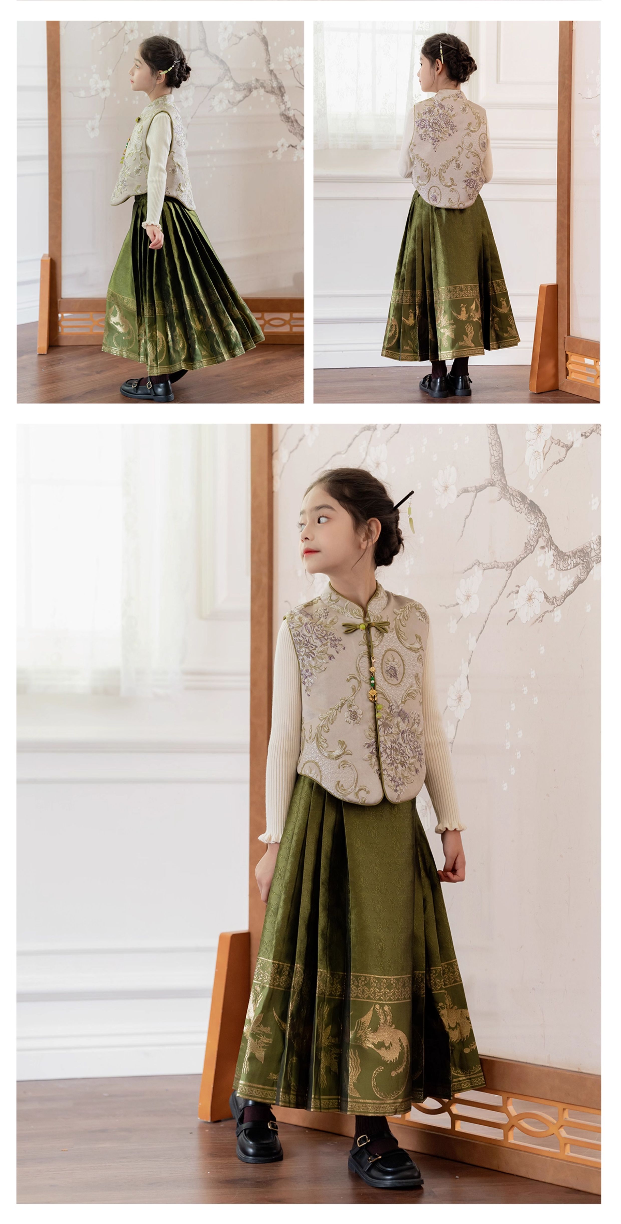 littletime女童中国风汉服套装裙2025新款小女孩新中式礼服两件套