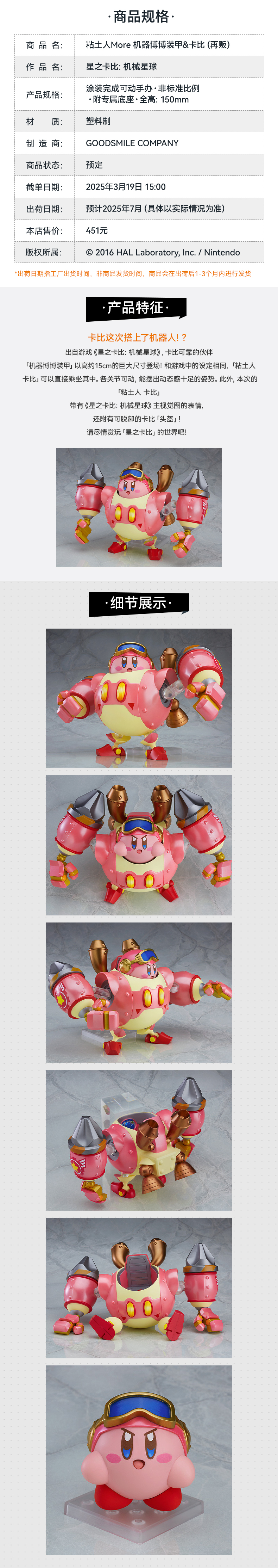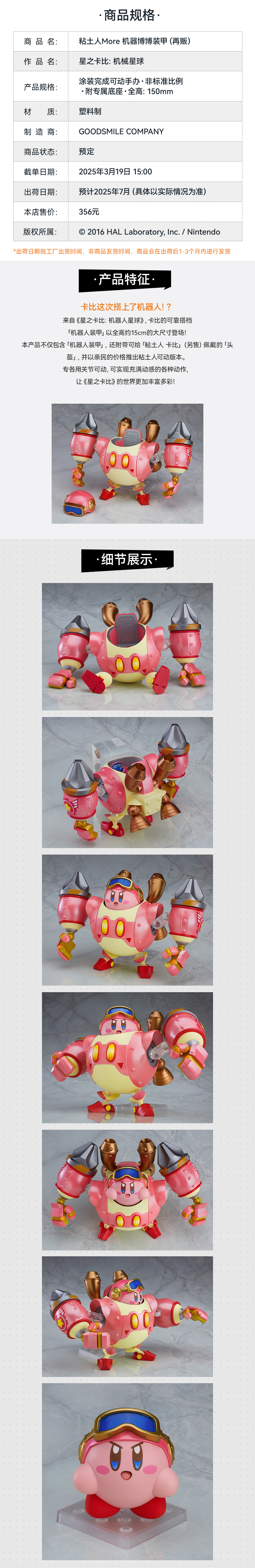 【GSC补款】粘土人More 机器博博装甲&卡比/机器博博装甲 星之卡比:机械星球