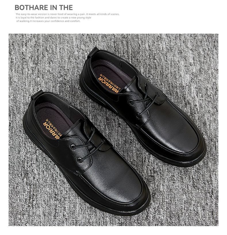 回力皮鞋男士2023新款一脚蹬懒人工作鞋软皮软底黑色商务休闲男鞋0035