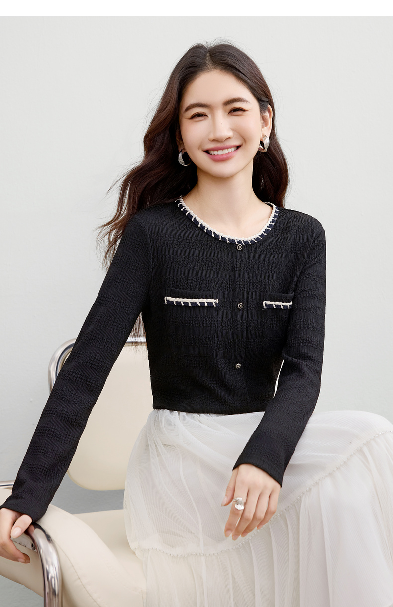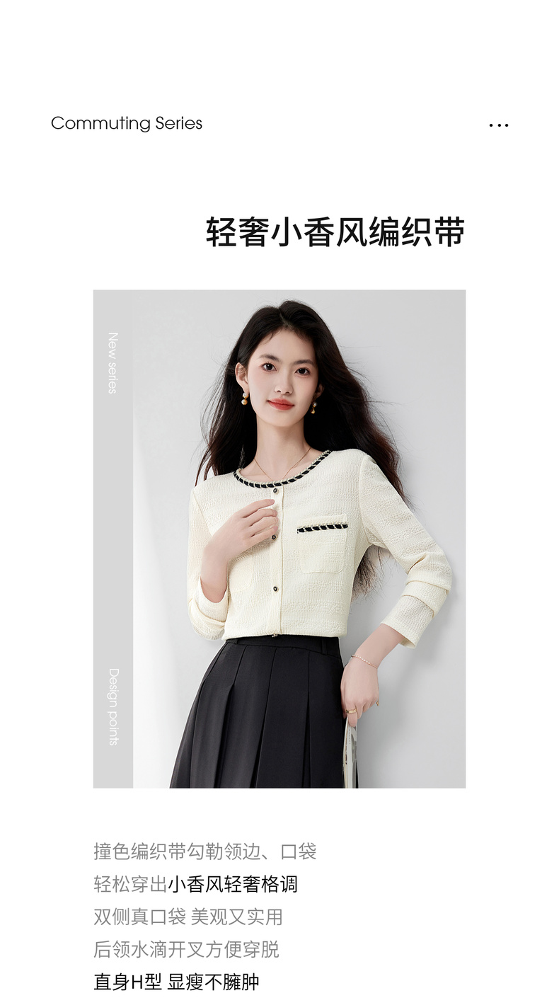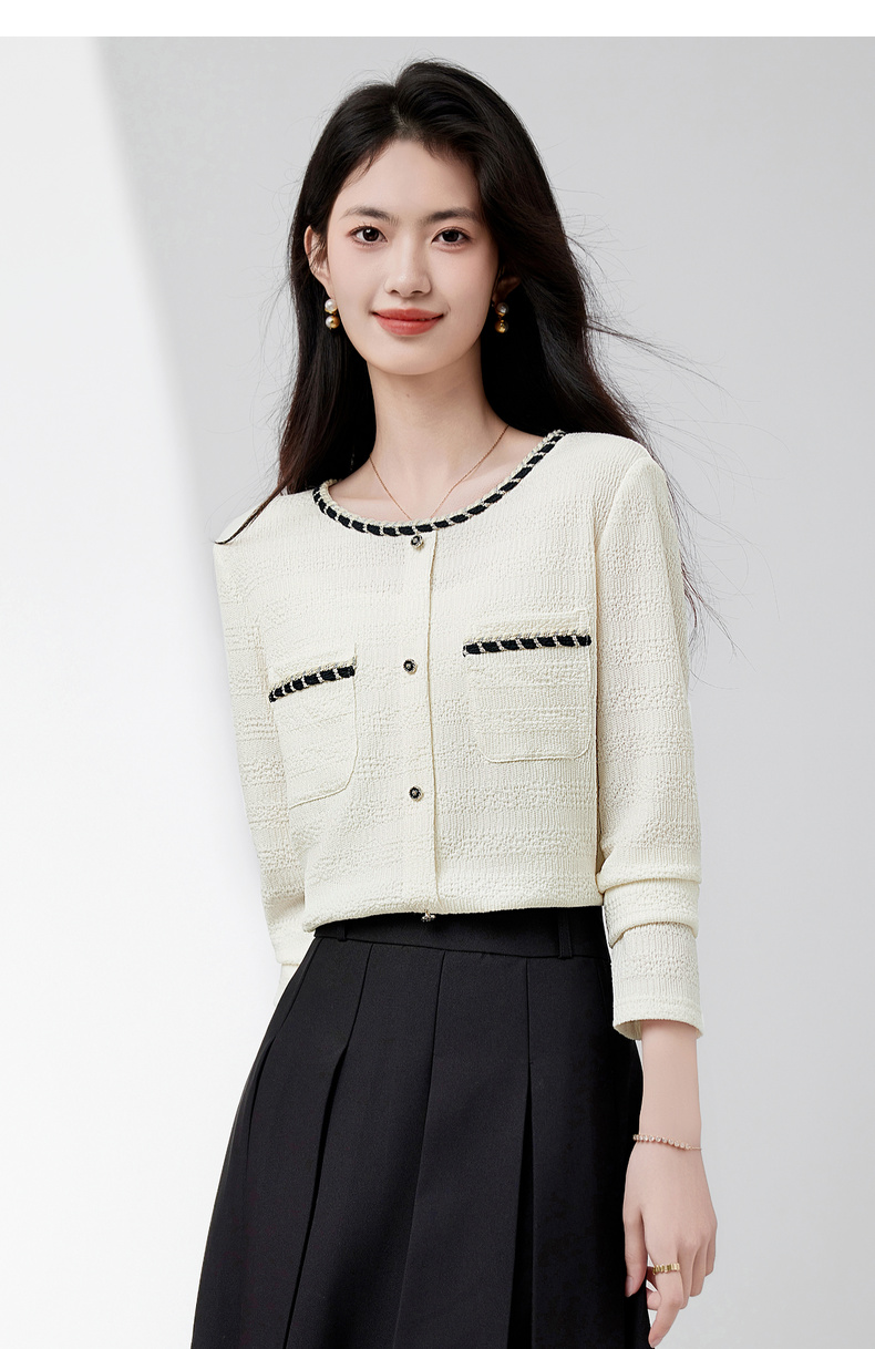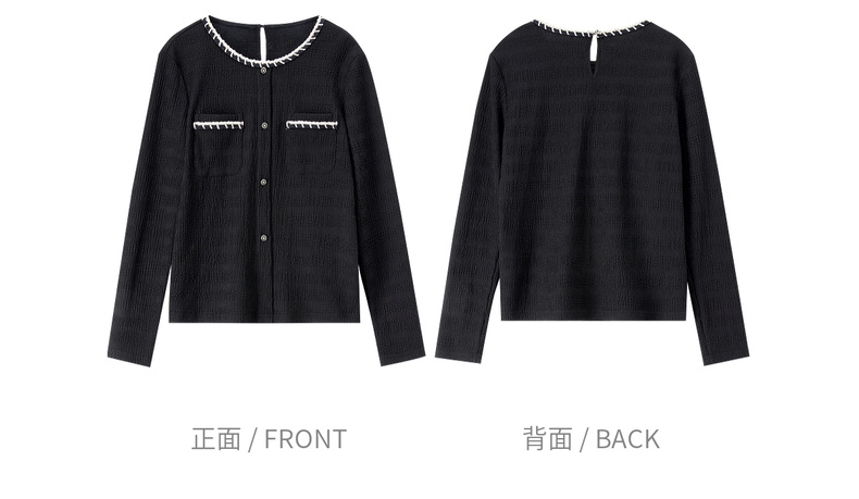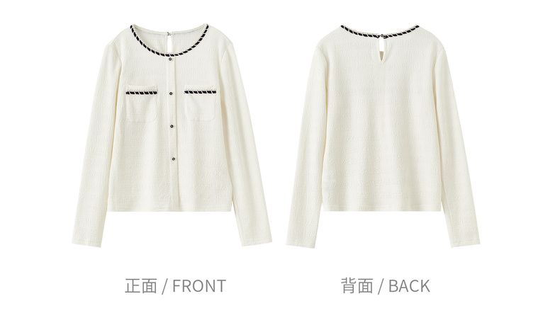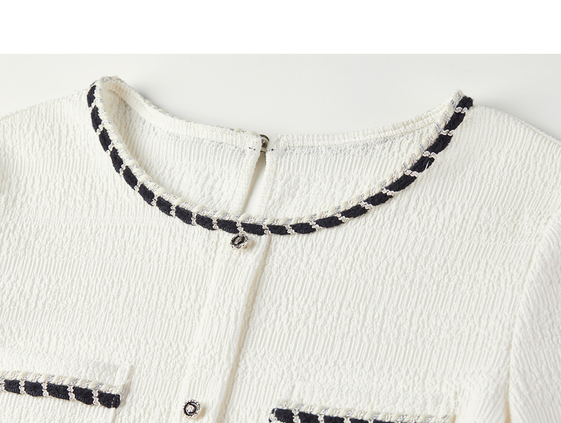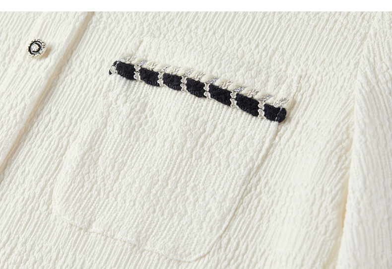 【内购】【小香风编织带】圆领单排扣两侧真口袋小香风编织带蕾丝衫-153SA2778
