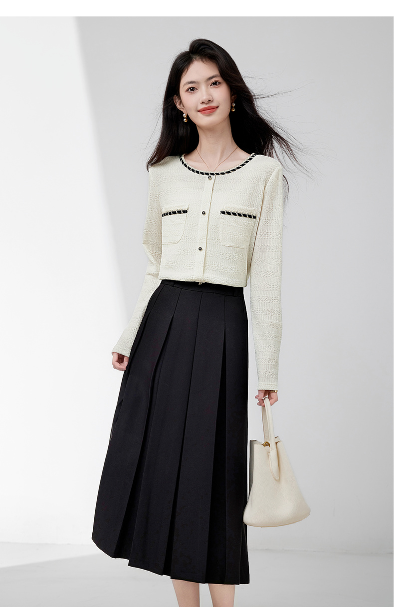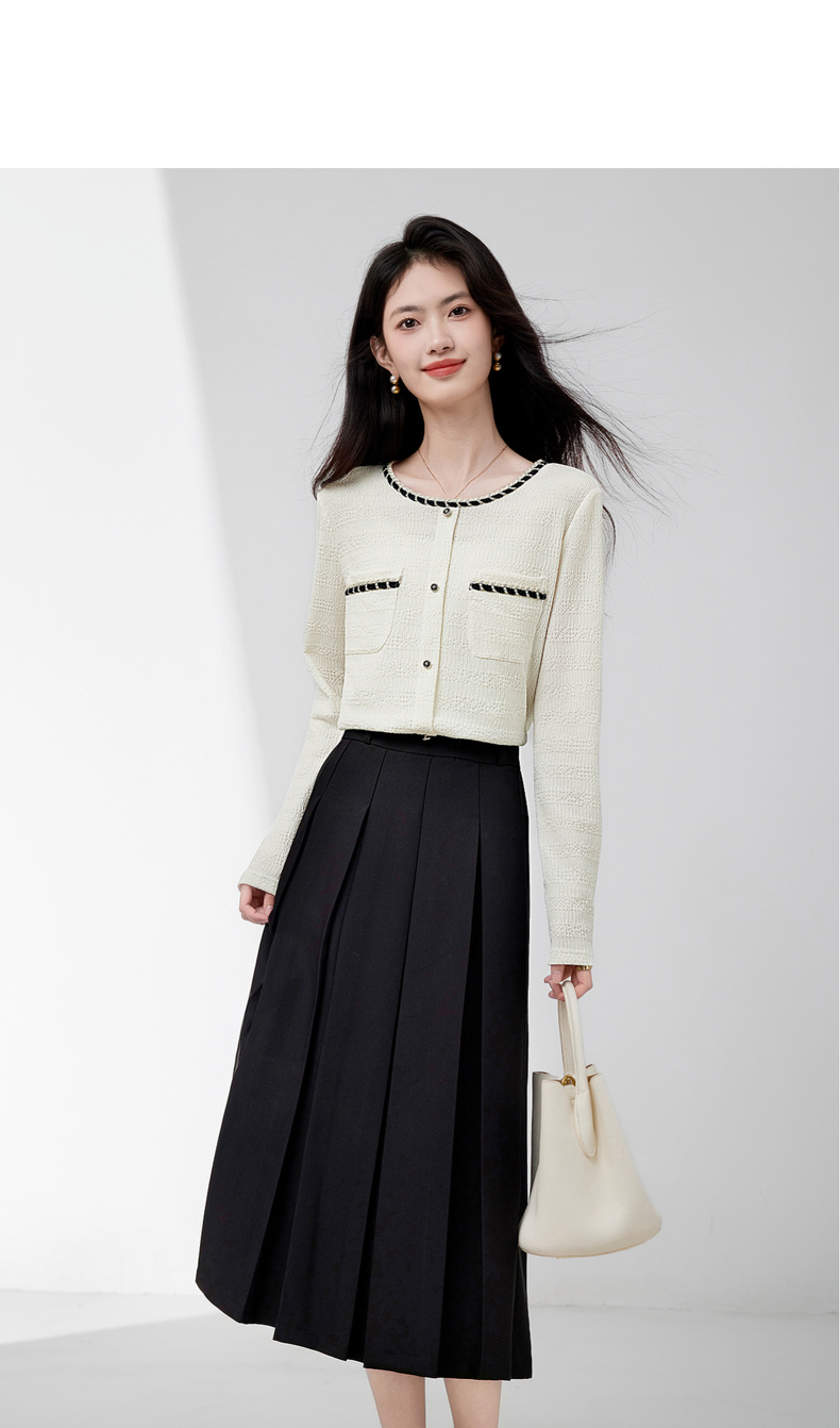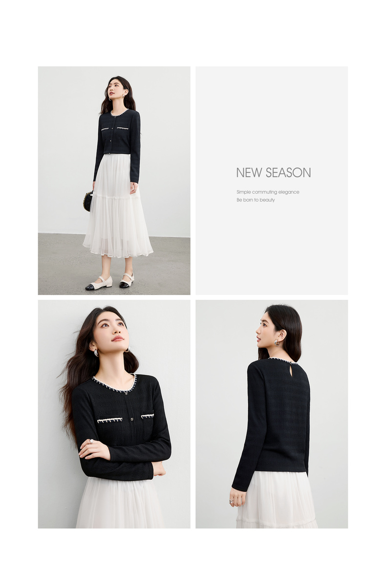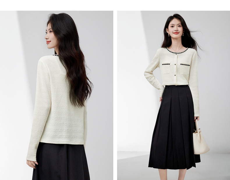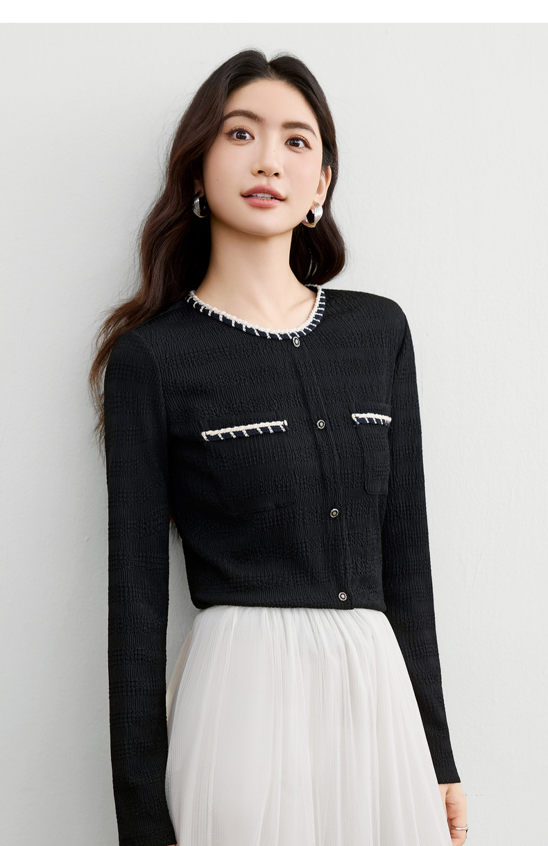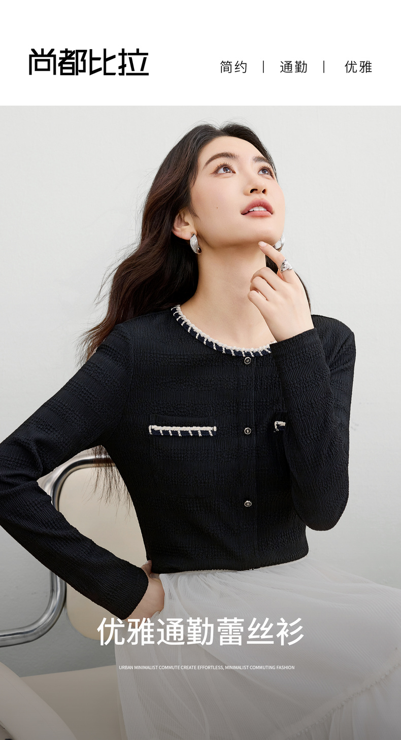 【内购】【小香风编织带】圆领单排扣两侧真口袋小香风编织带蕾丝衫-153SA2778