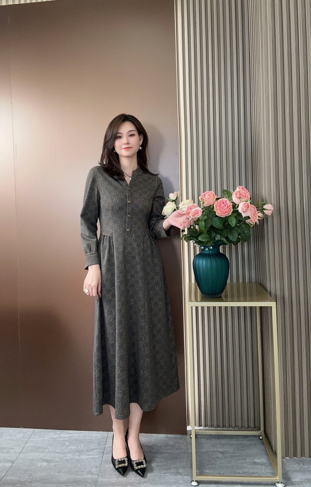 3352~#~ 轻奢高端法式圆领长袖连衣裙 设计优雅大方,配以女人味的设计元素, 款款而来