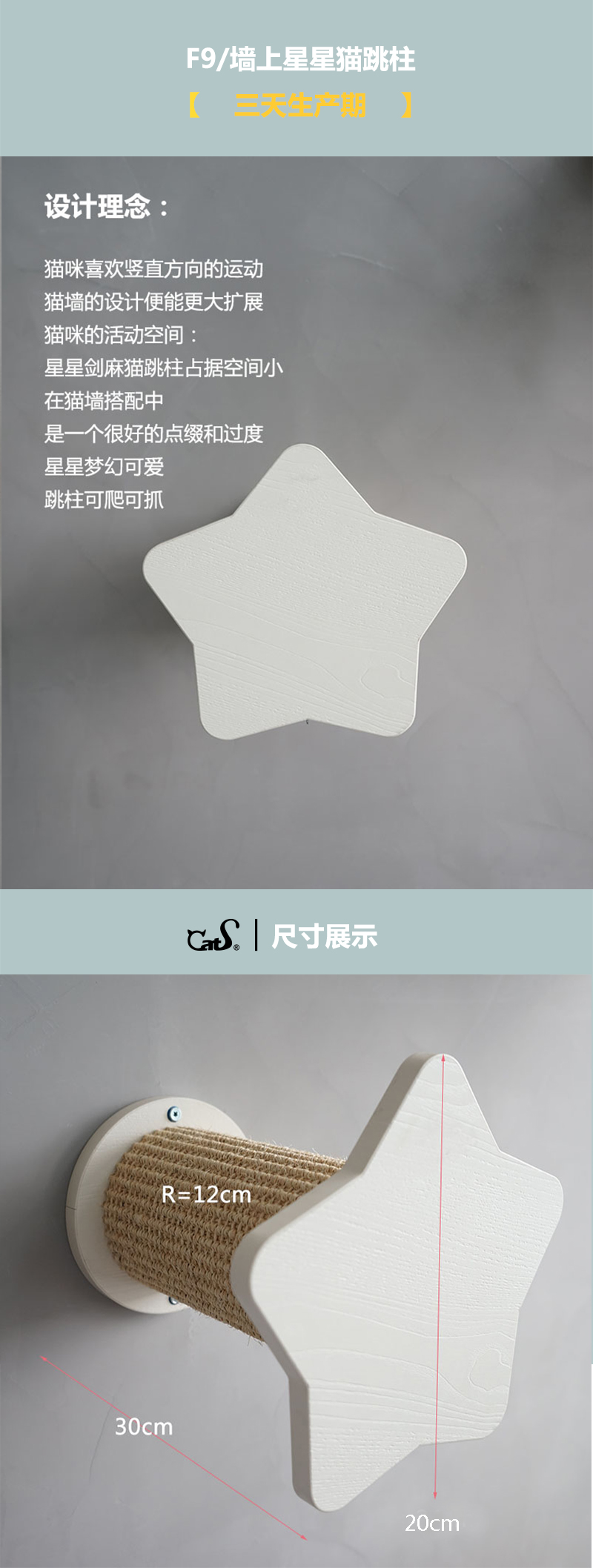 CatS猫家具组合猫墙系列之 墙上星星跳柱 剑麻猫抓柱猫抓板F9包邮