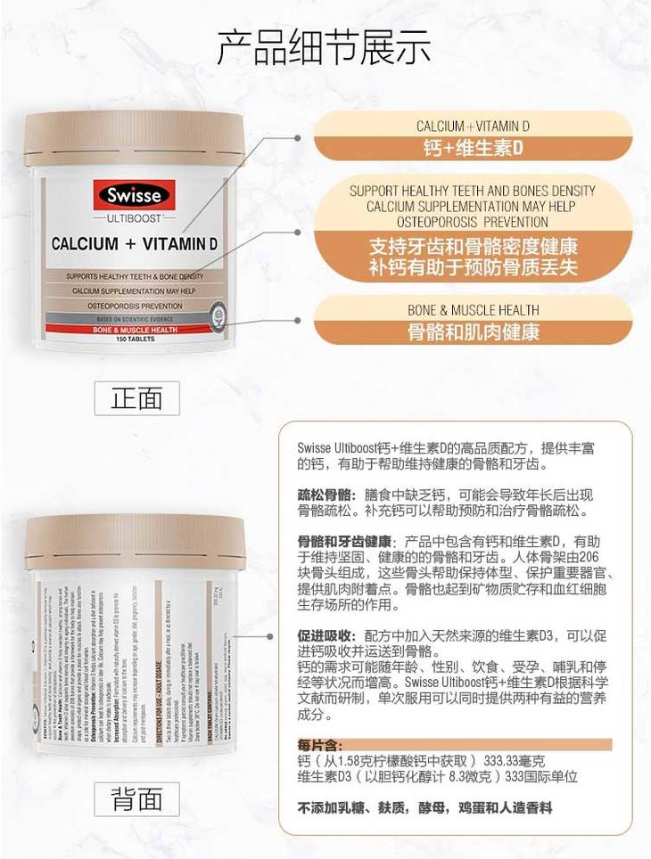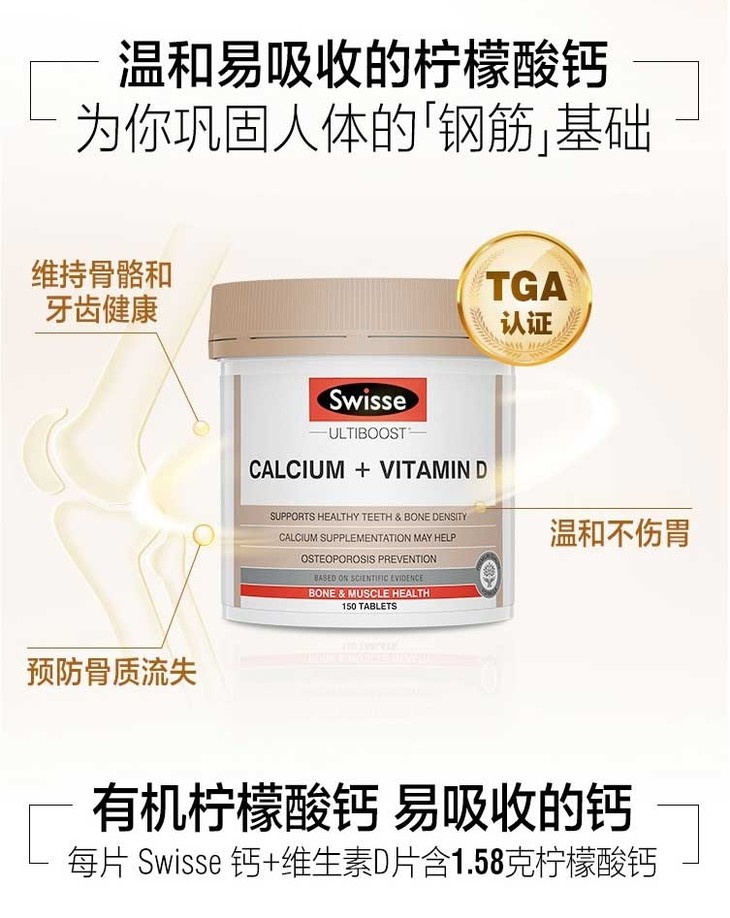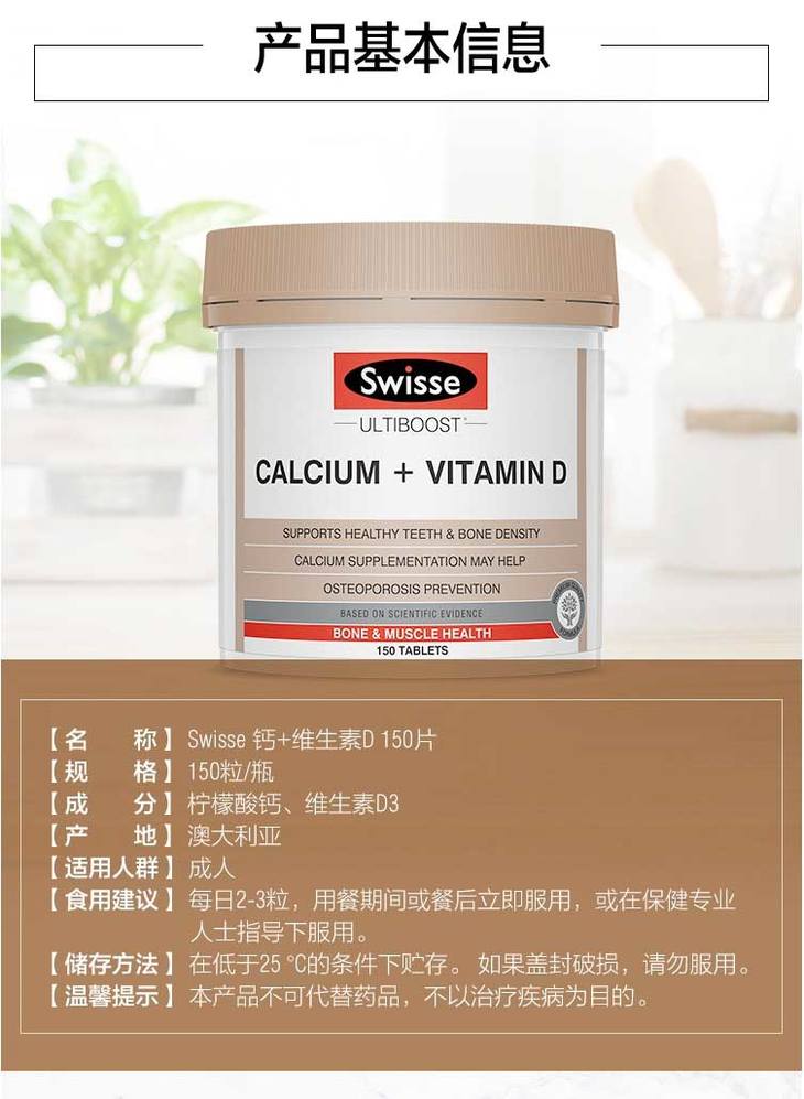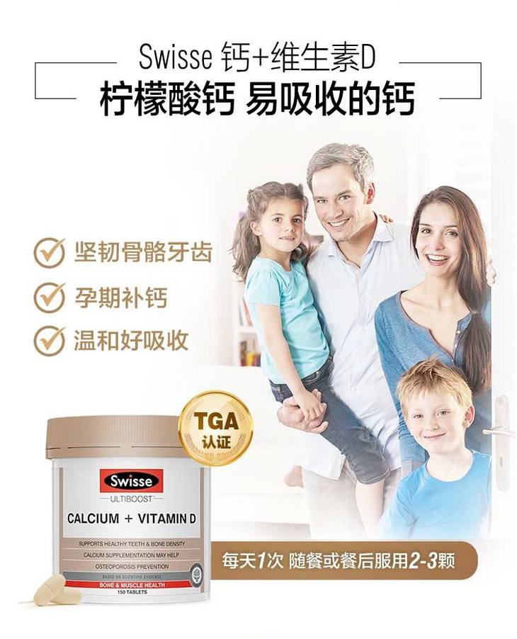 【BSC】澳洲swisse斯维诗钙片+维生素D柠檬酸钙150片