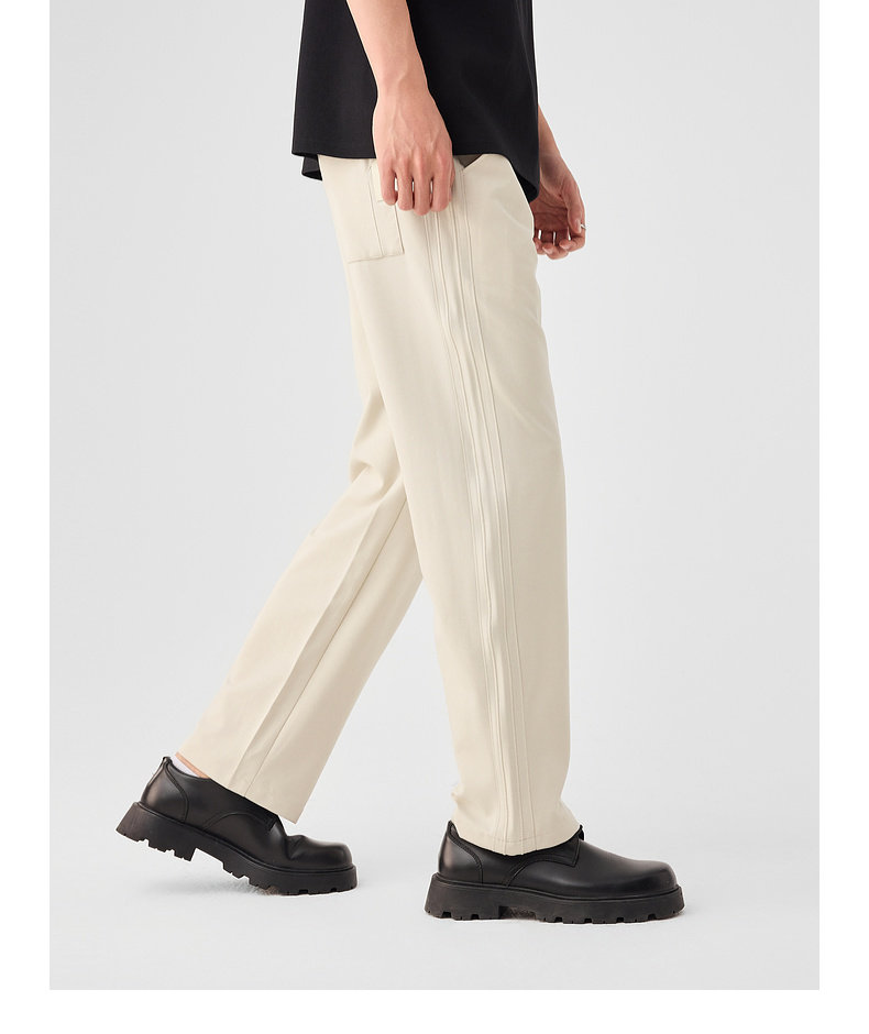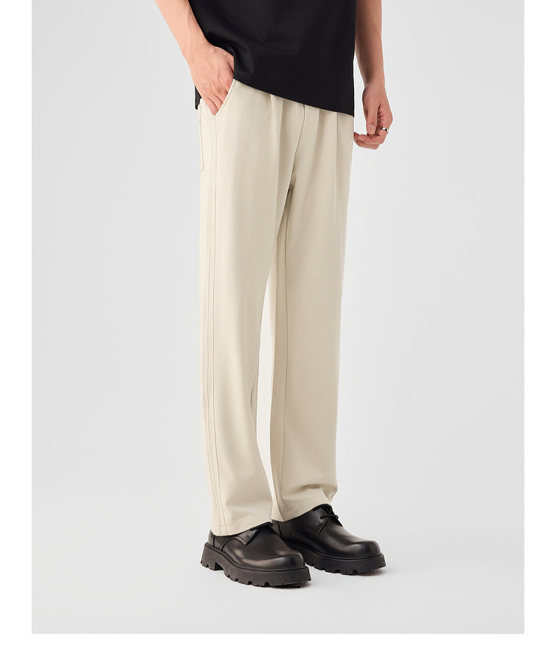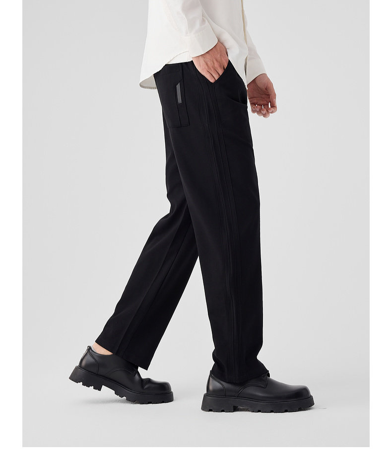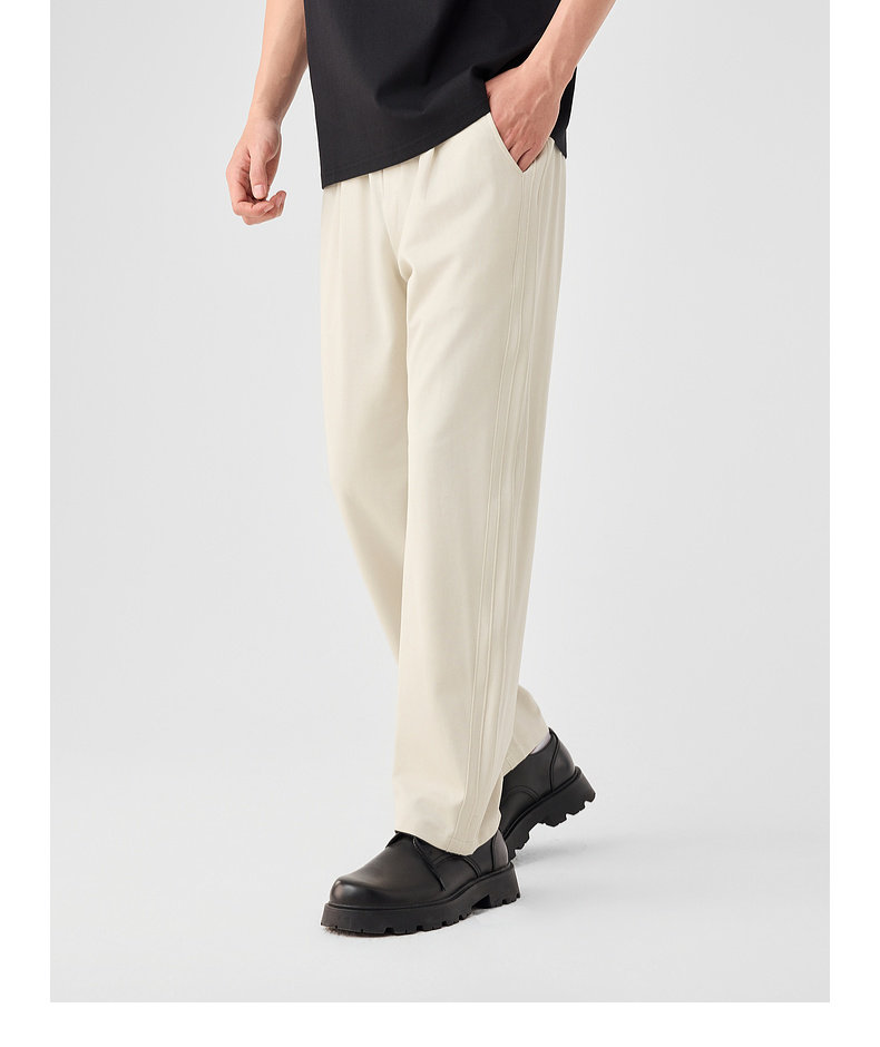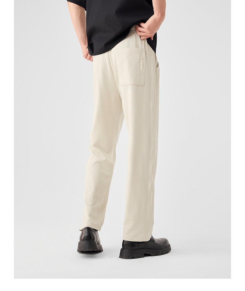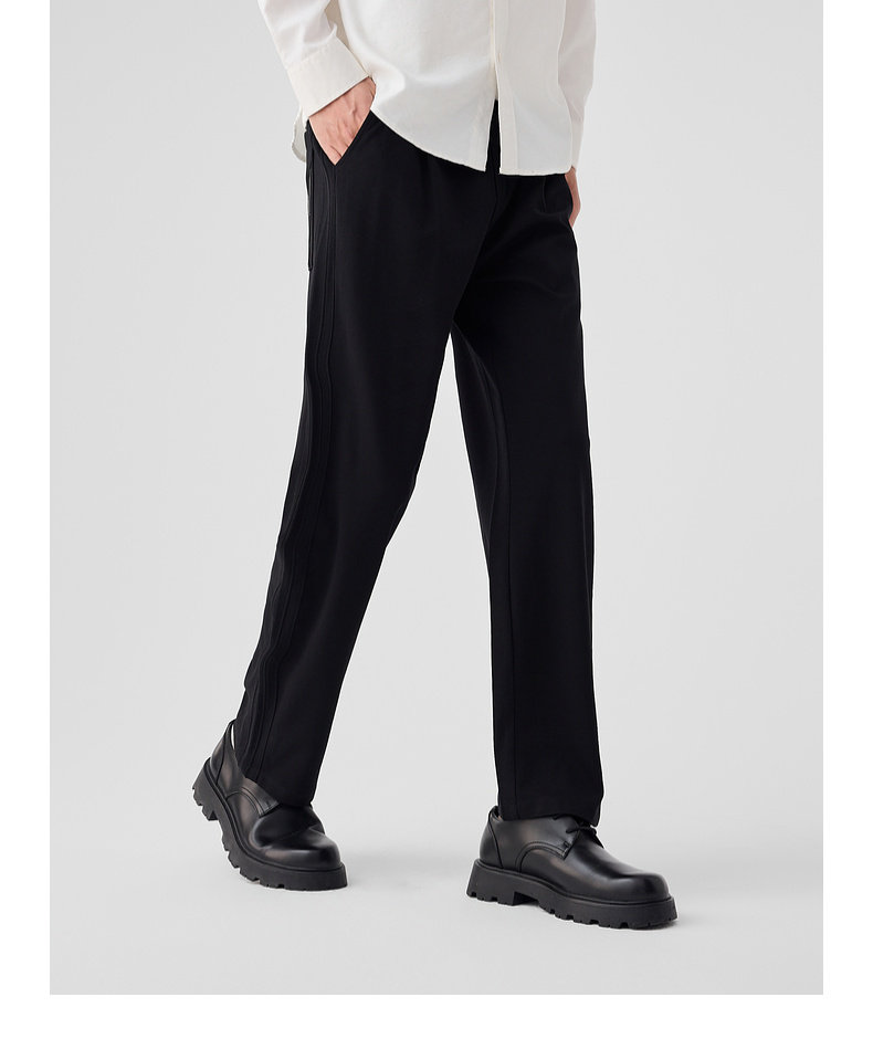 墨麦客链条纹针织休闲长裤男士2025春季新款简约拼接压线裤子男。