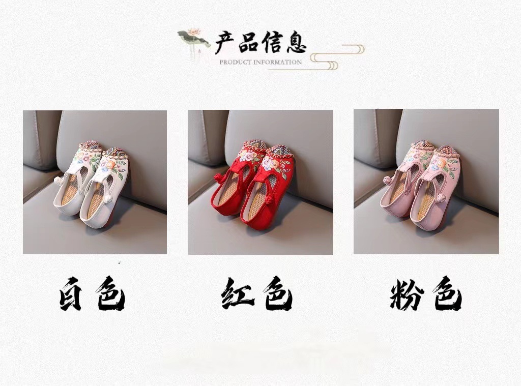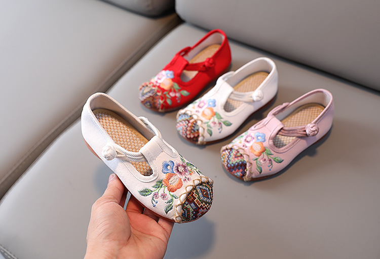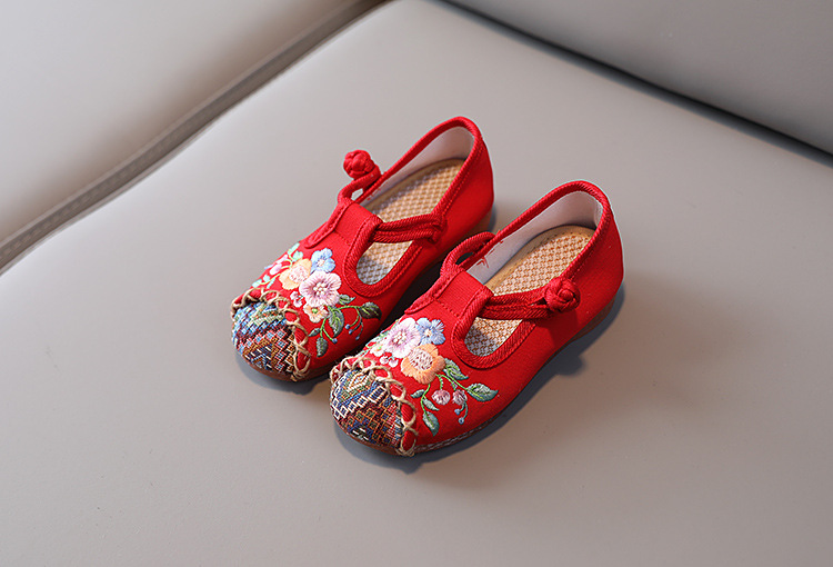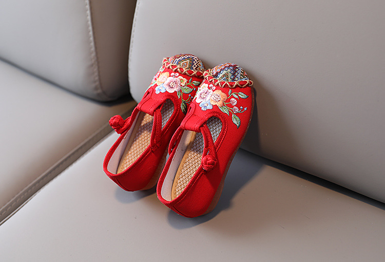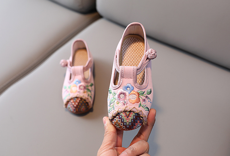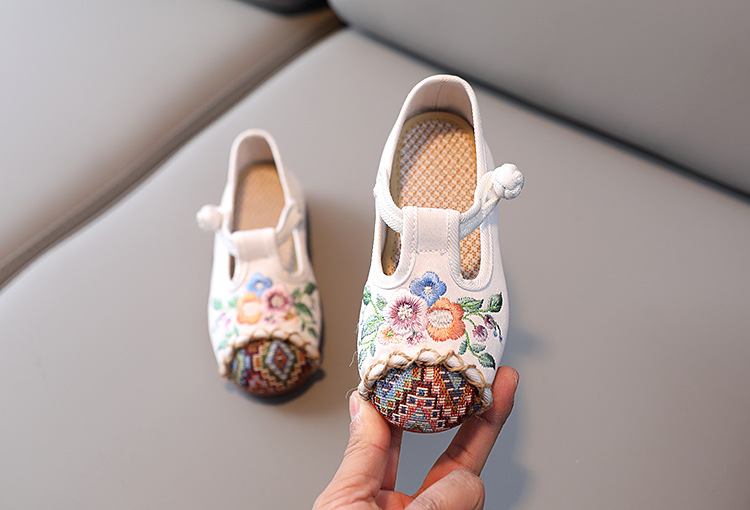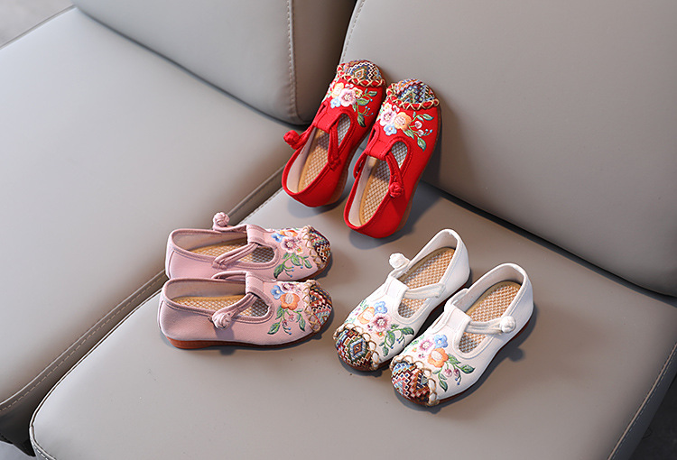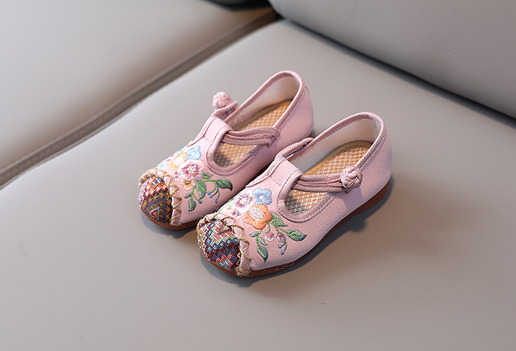 儿童汉服鞋子软底民族风复古女童绣花布鞋 BS-T22-11