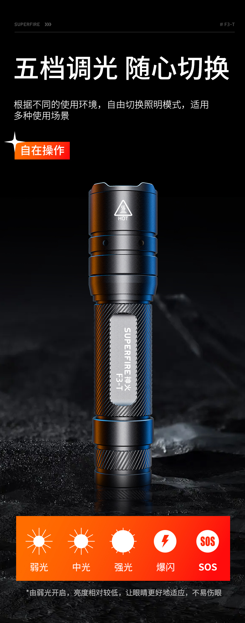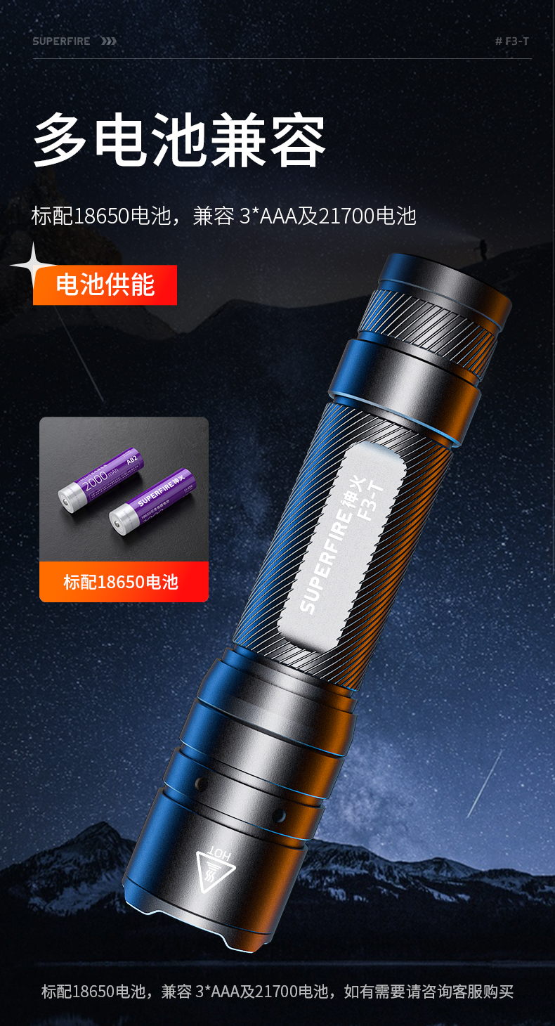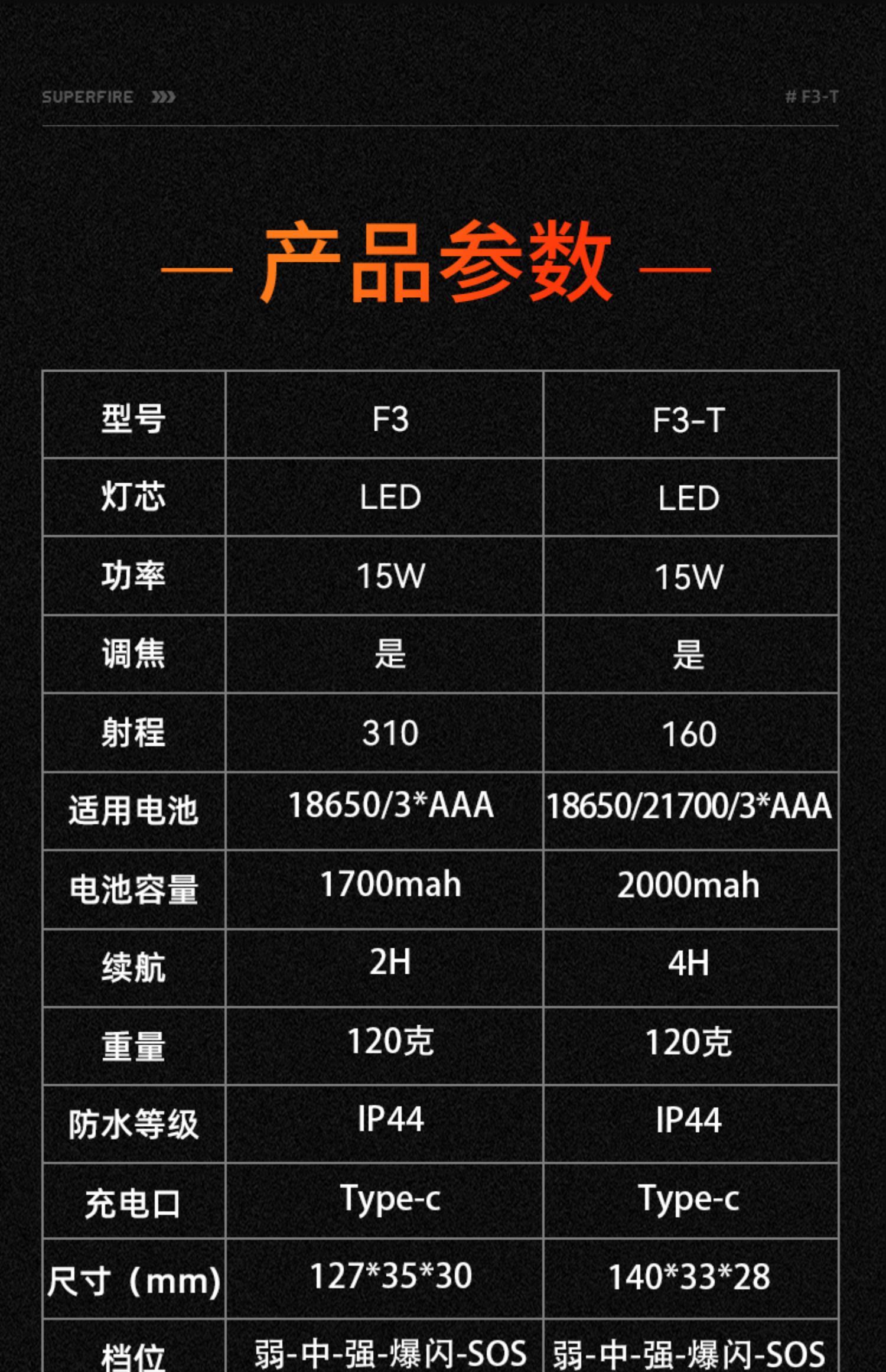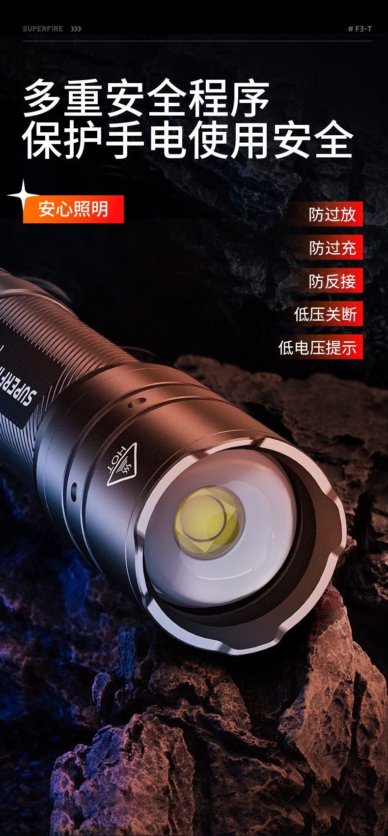 SUPERFIRE神火F3调焦手电筒强光远射充电户外led家用应急便携式手电