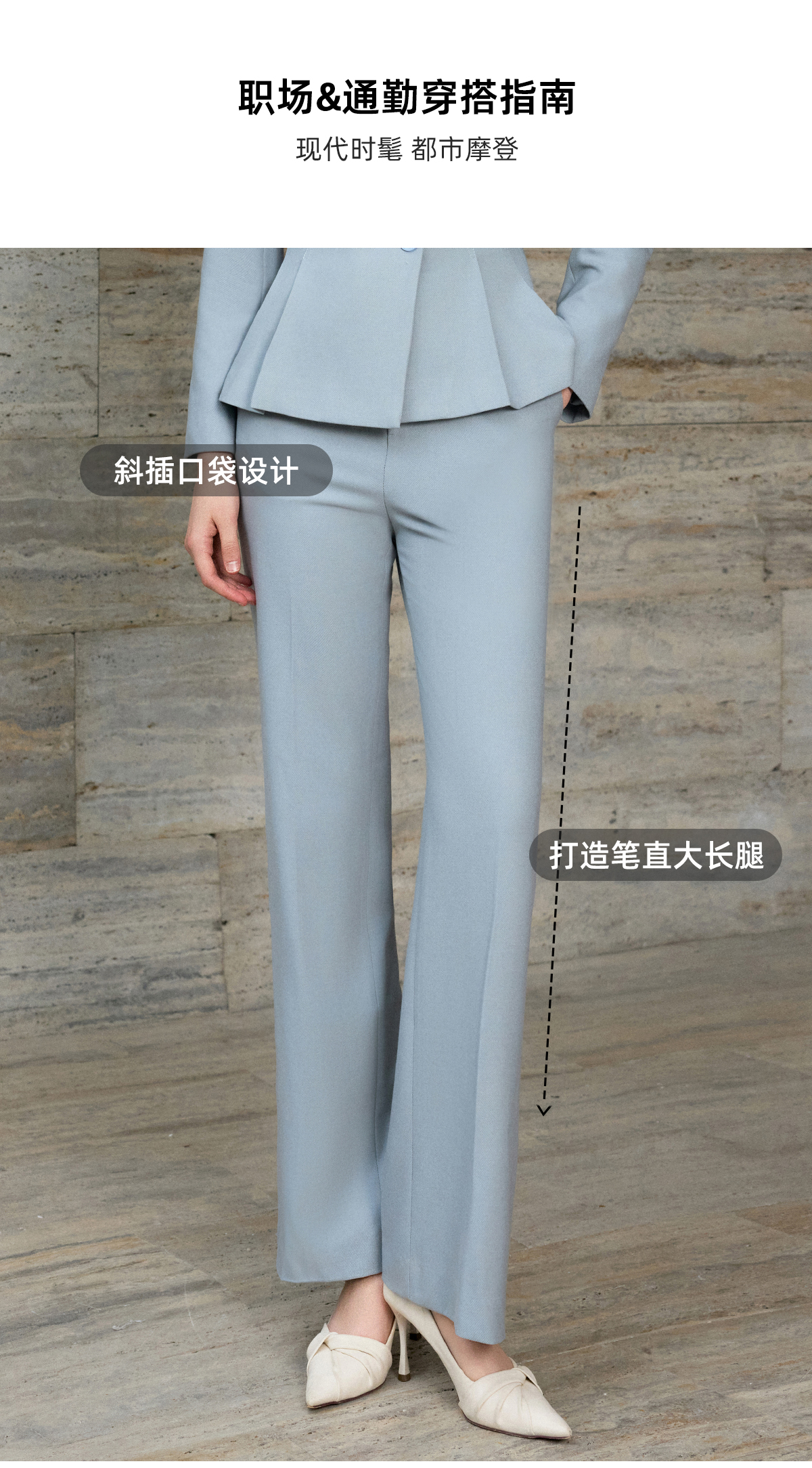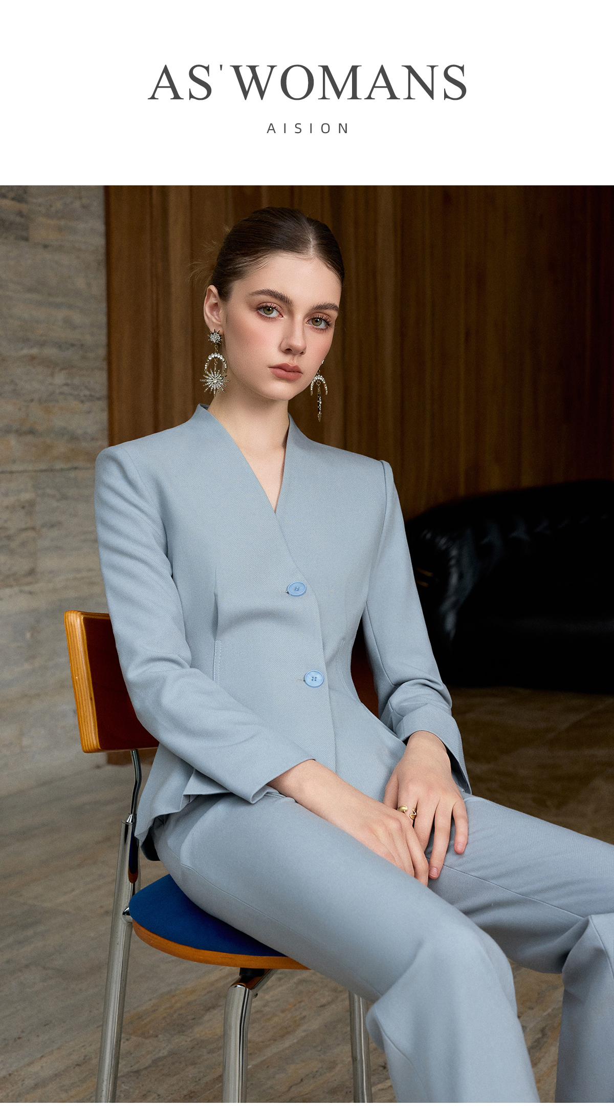 IWY/高级感蓝色无领西装套装女秋冬款职业装通勤正装气质工作服25CP878