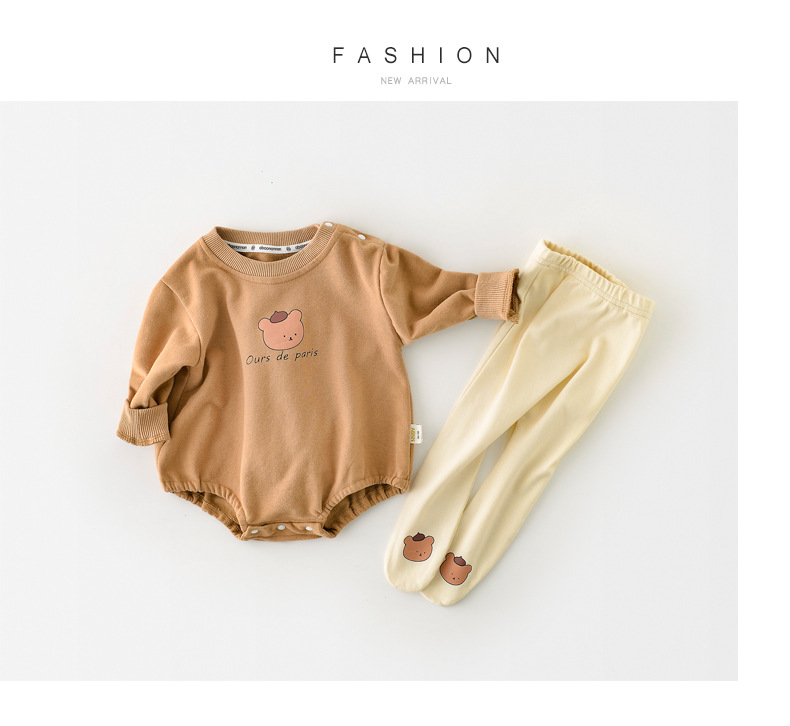 2021秋款新款韩版婴幼儿男女宝宝卡通小熊三角包屁衣