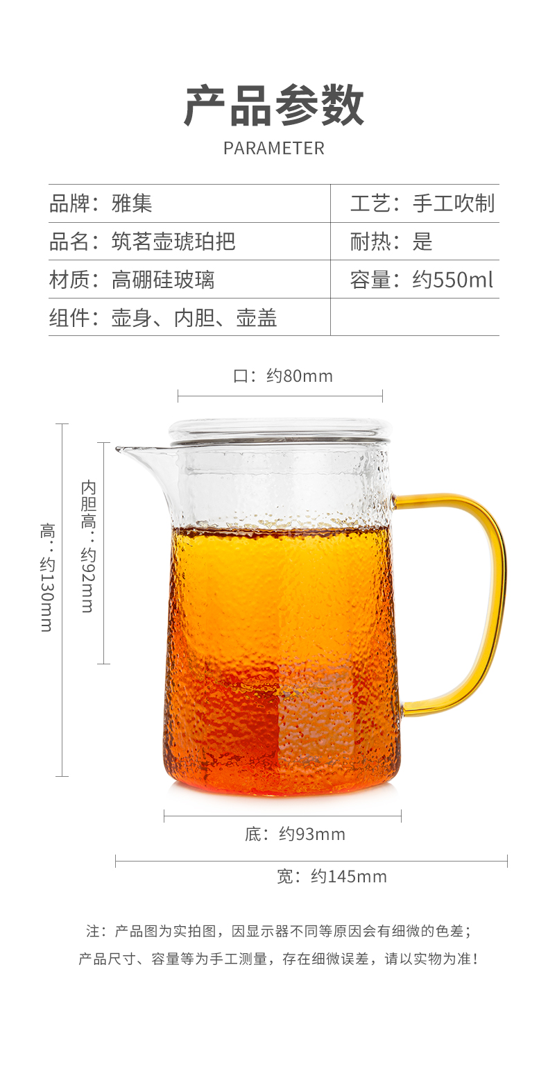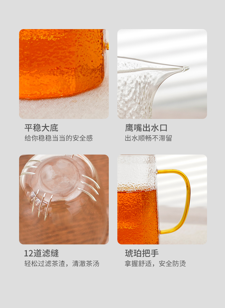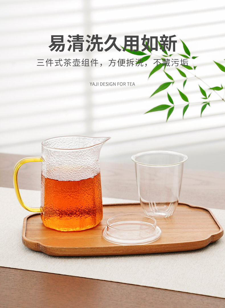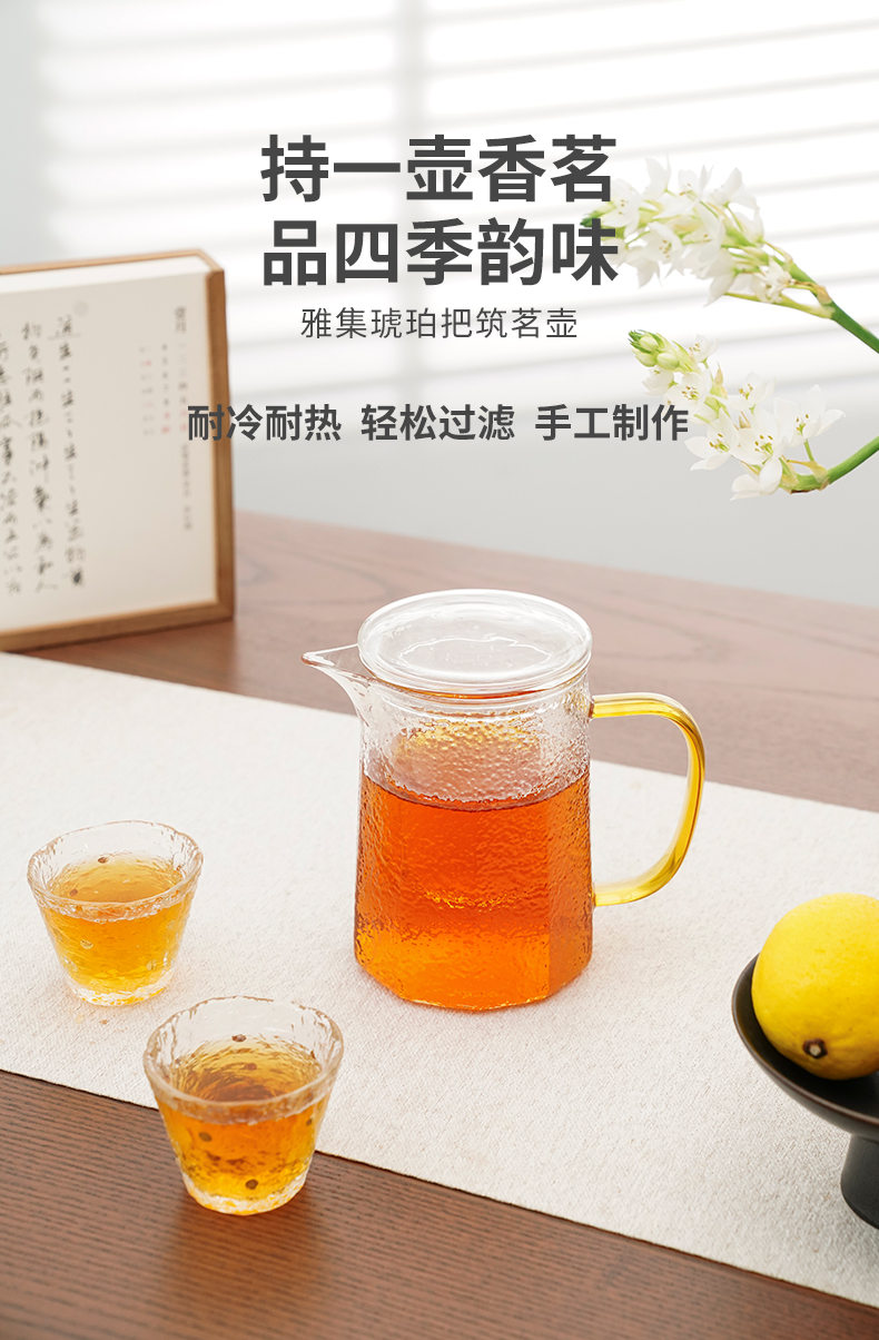雅集玻璃壶锤纹筑茗壶550ml(琥珀把)