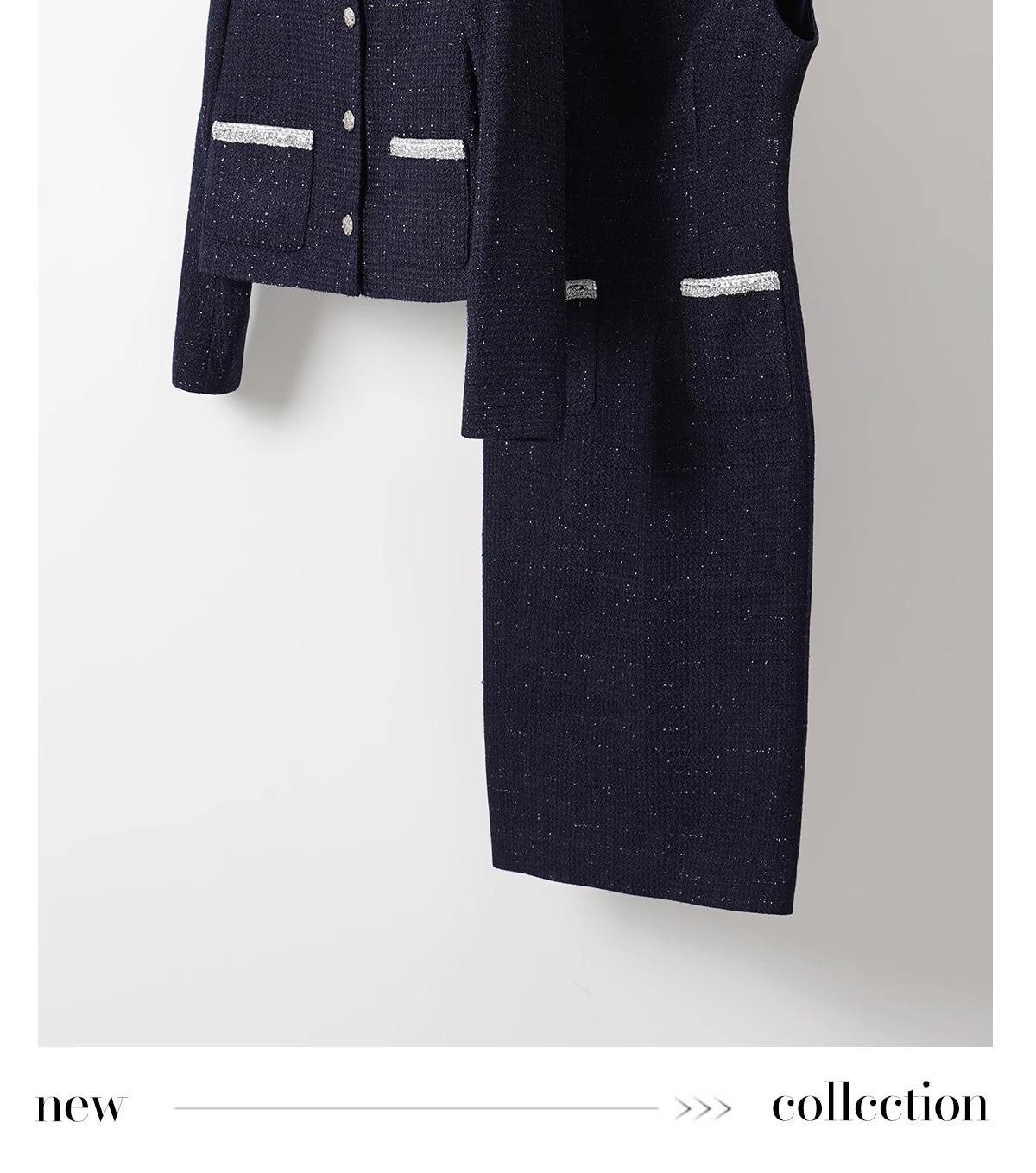 IWY/藏青色小香风外套背心裙两件套冬季新款职业装高级感职业套装 WCQ031