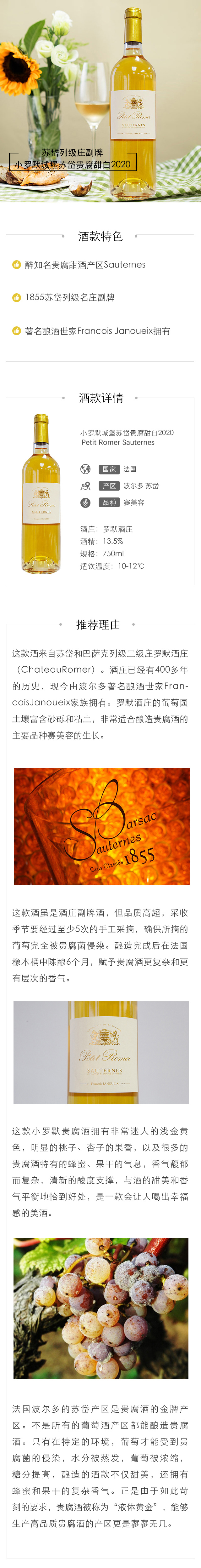 【苏岱列级庄副牌】小罗默城堡苏岱贵腐甜白2020
