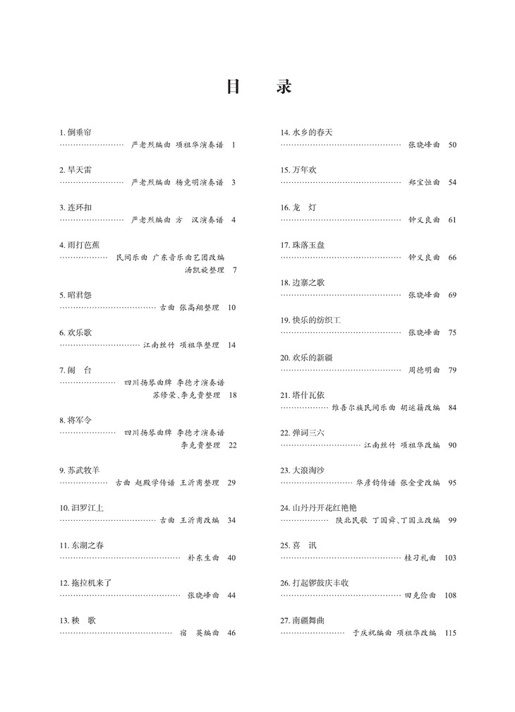 作品卷则从近百年来所见的千余首扬琴作品中遴选出九十多首经典传统曲目与优秀创作曲目,既涵盖了中国扬琴五大流派(东北扬琴、四川扬琴、江南丝竹扬琴、广东扬琴与新疆扬琴)的传统代表作,也收录了当代扬琴音乐家们的创造改编作品。