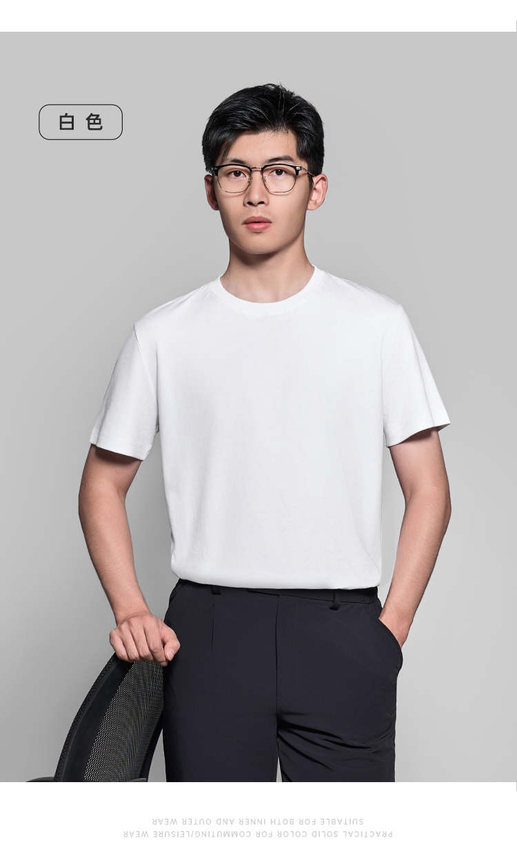 【实付满399送保温杯】【液氨新疆长绒棉短袖T恤】透气通勤圆领短袖T恤 休闲运动半袖上衣TT507