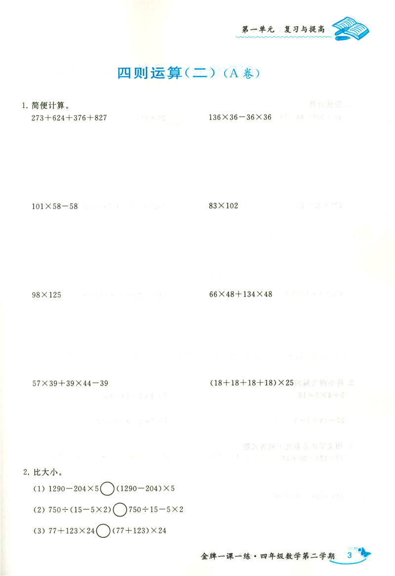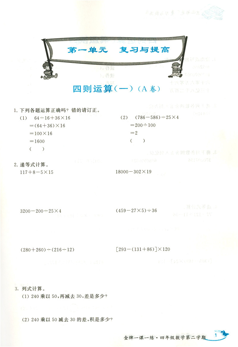 我能考第一 金牌一课一练 数学 四年级第二学期/4下 上海小学教辅 中西书局