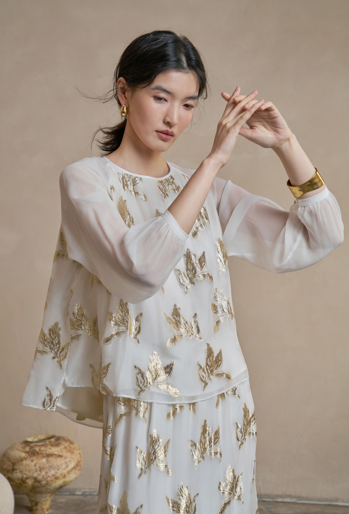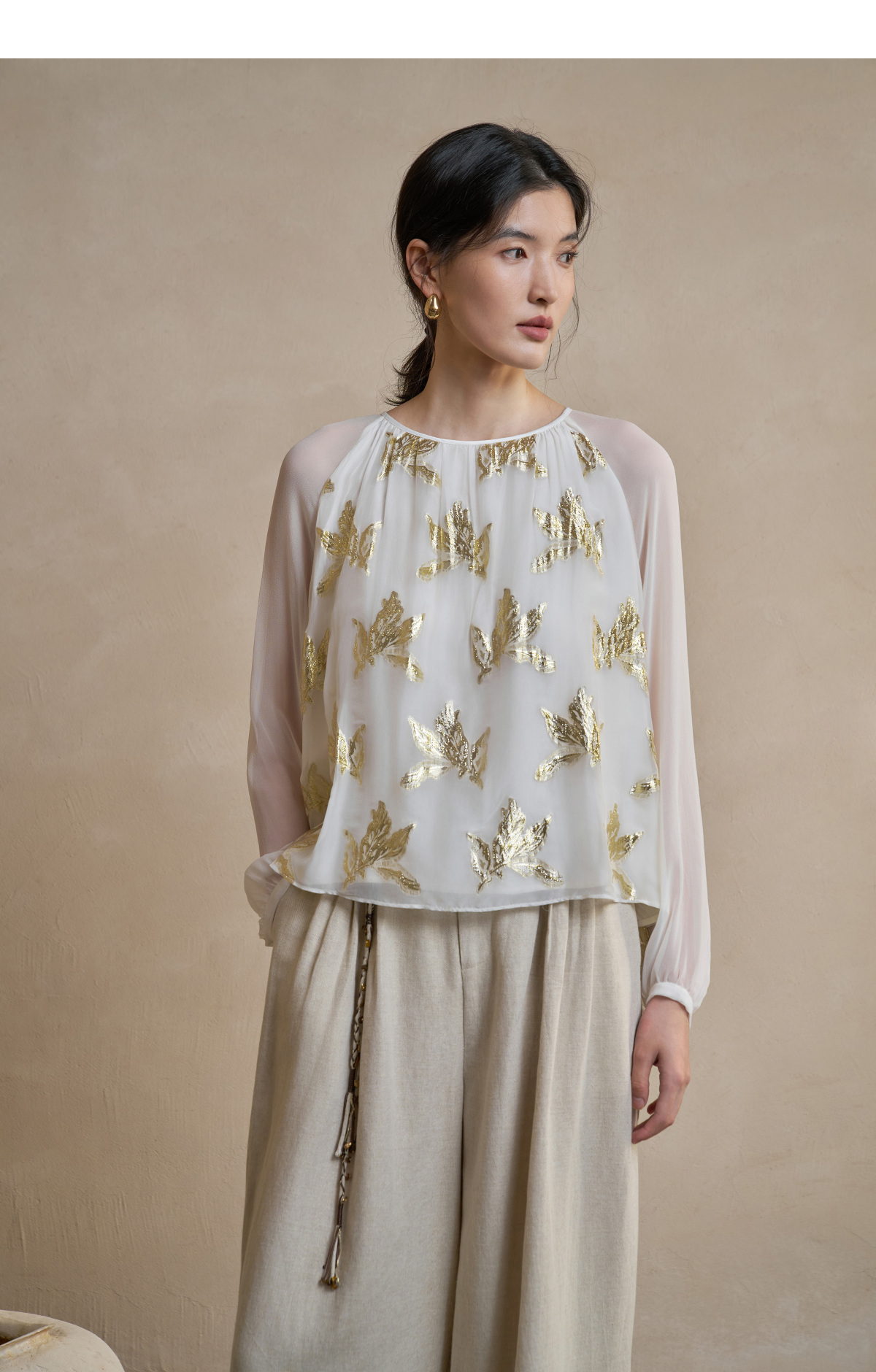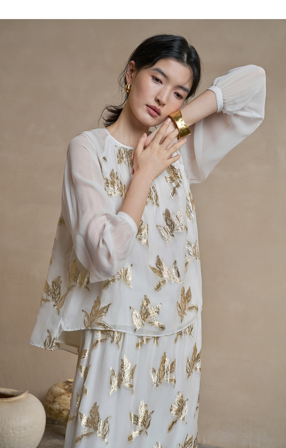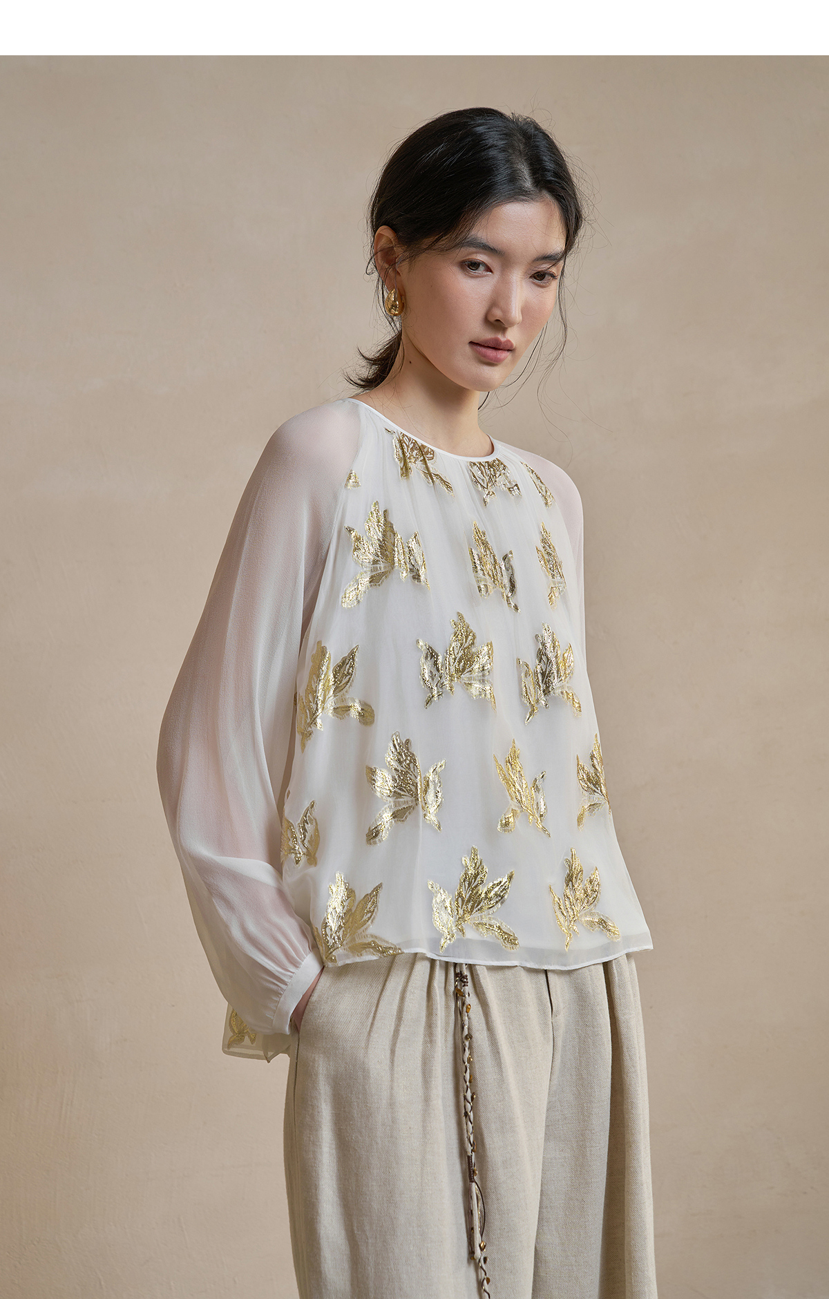 【林栖设计小店】花影鎏光|真丝衫剪花绡薄纱设计感2026早春新款上衣女1961130
