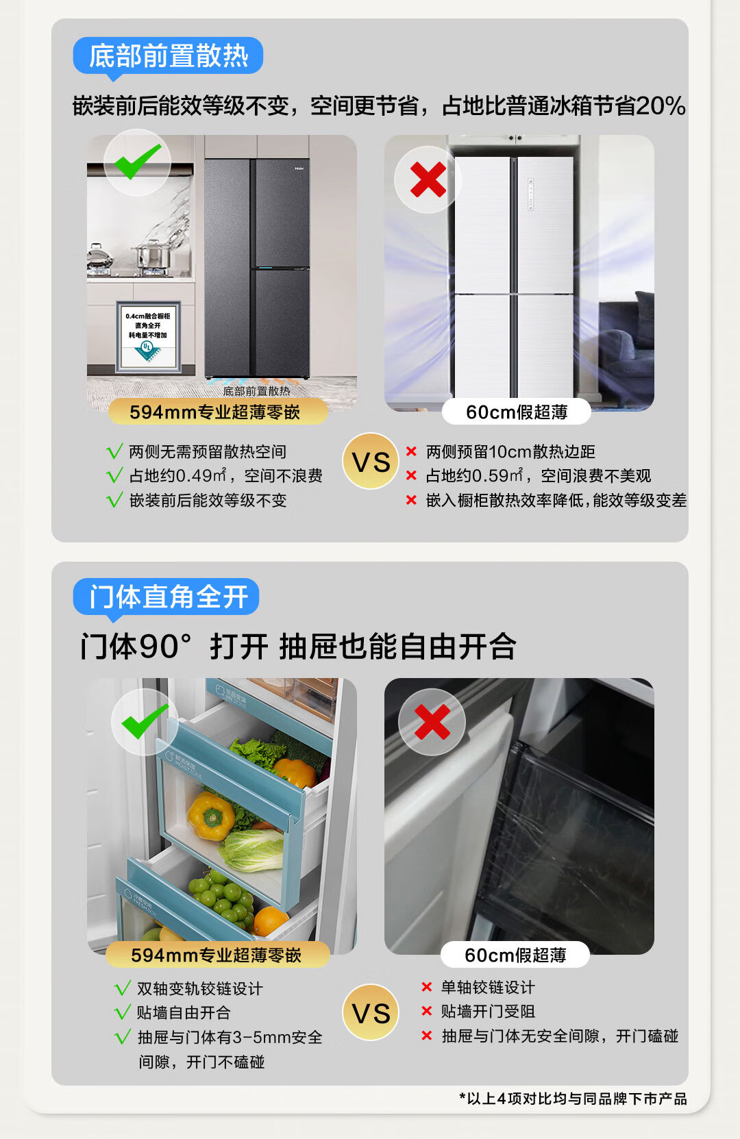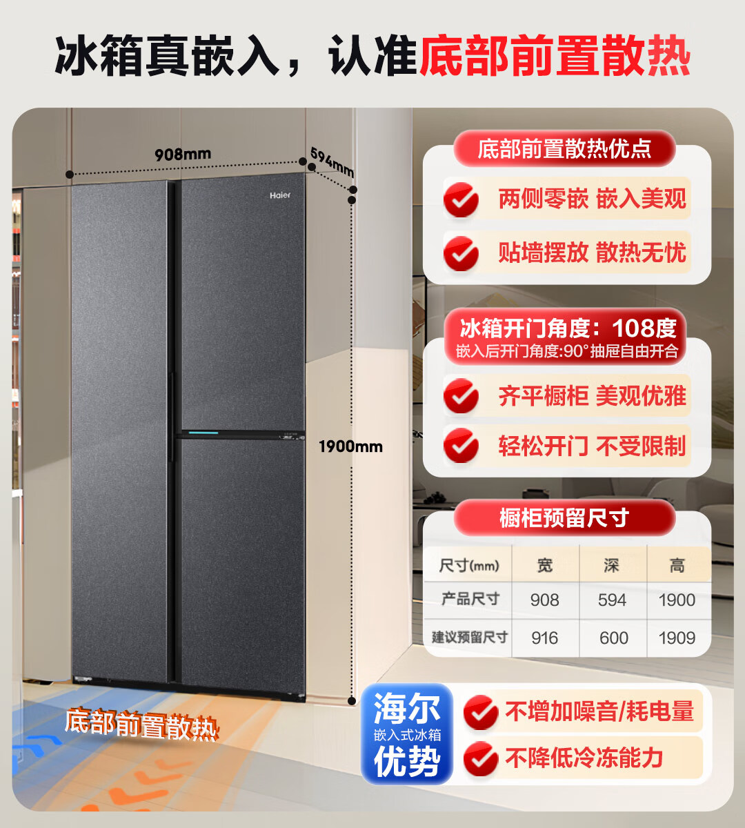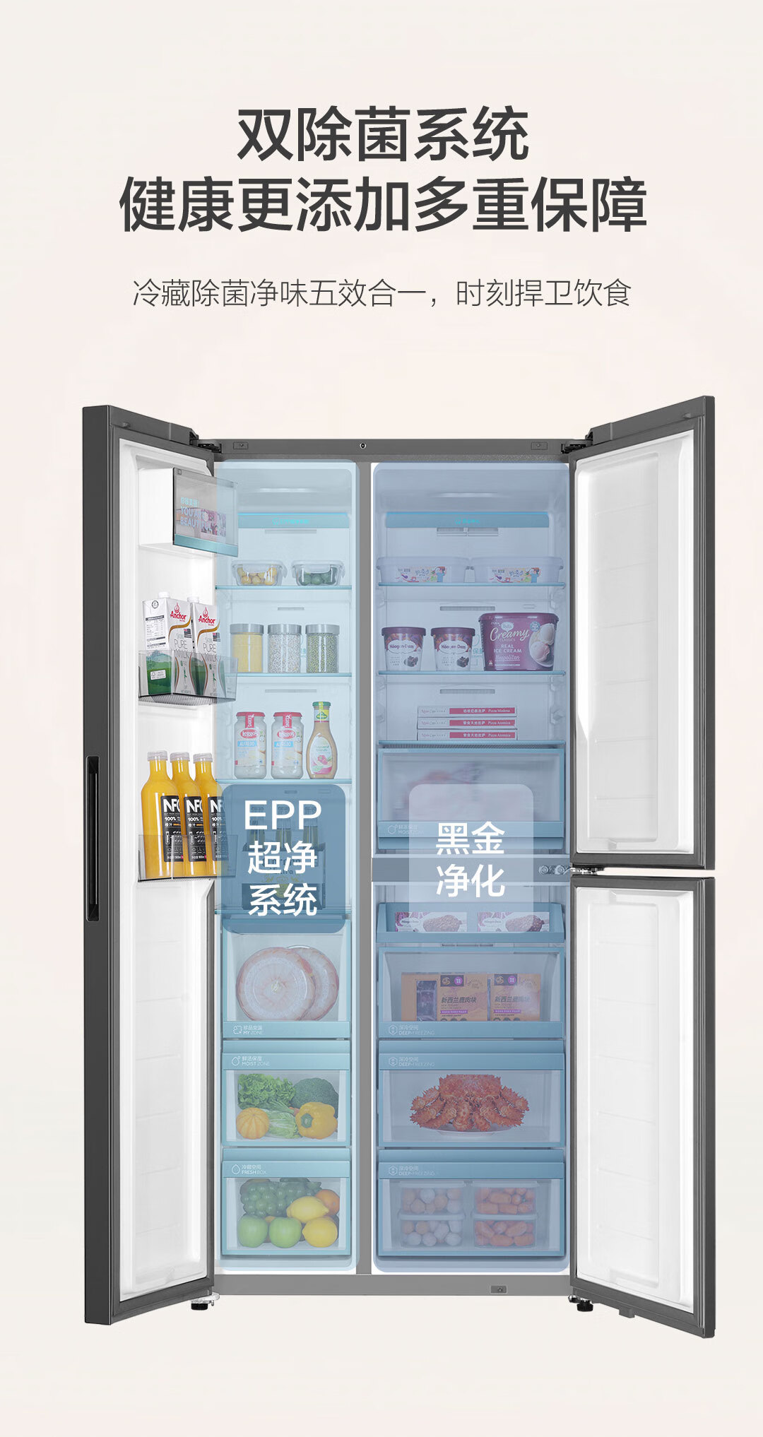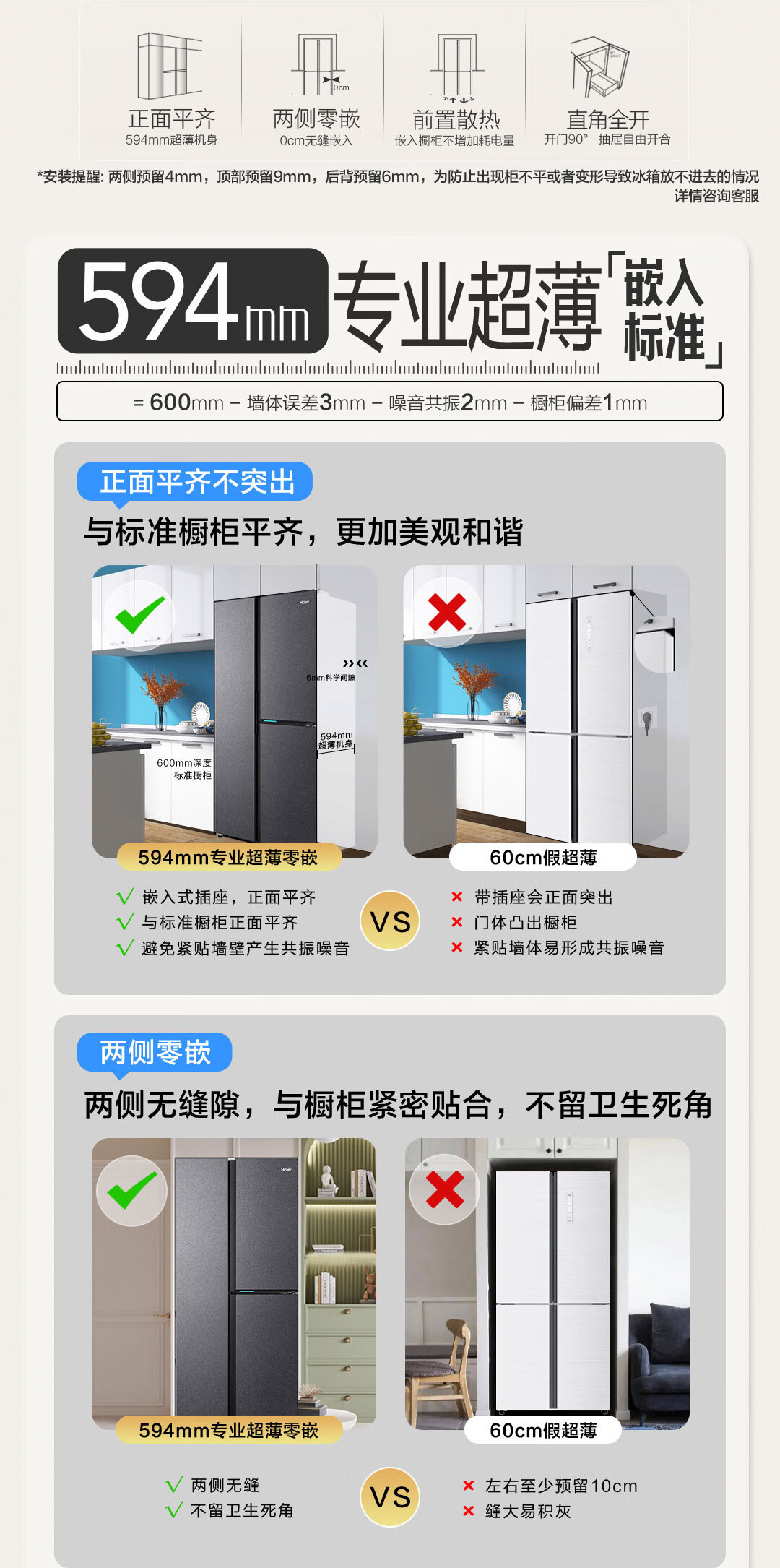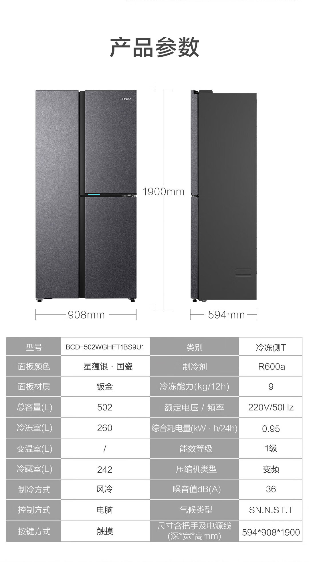 海尔(Haier)502升全空间保鲜594mm专业超薄零嵌入式双除菌侧T对开双开门家用电冰箱无霜BCD-502WGHFT1BS9U1