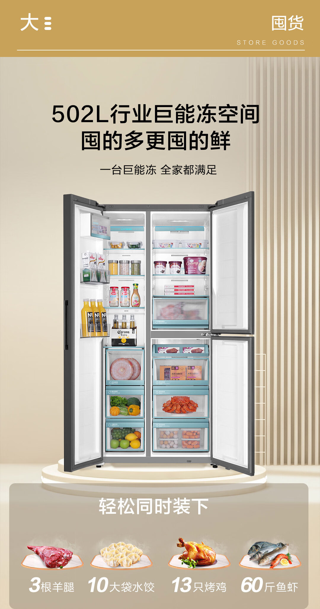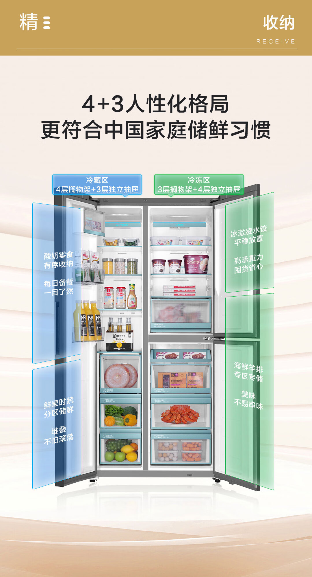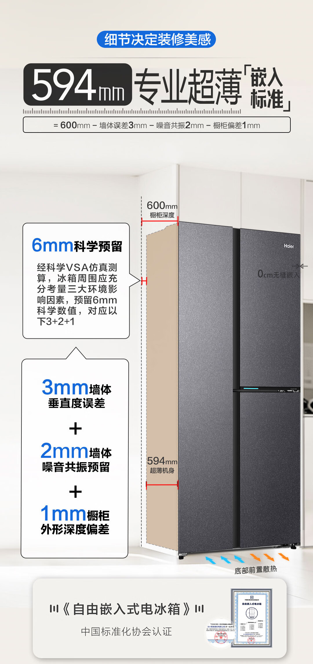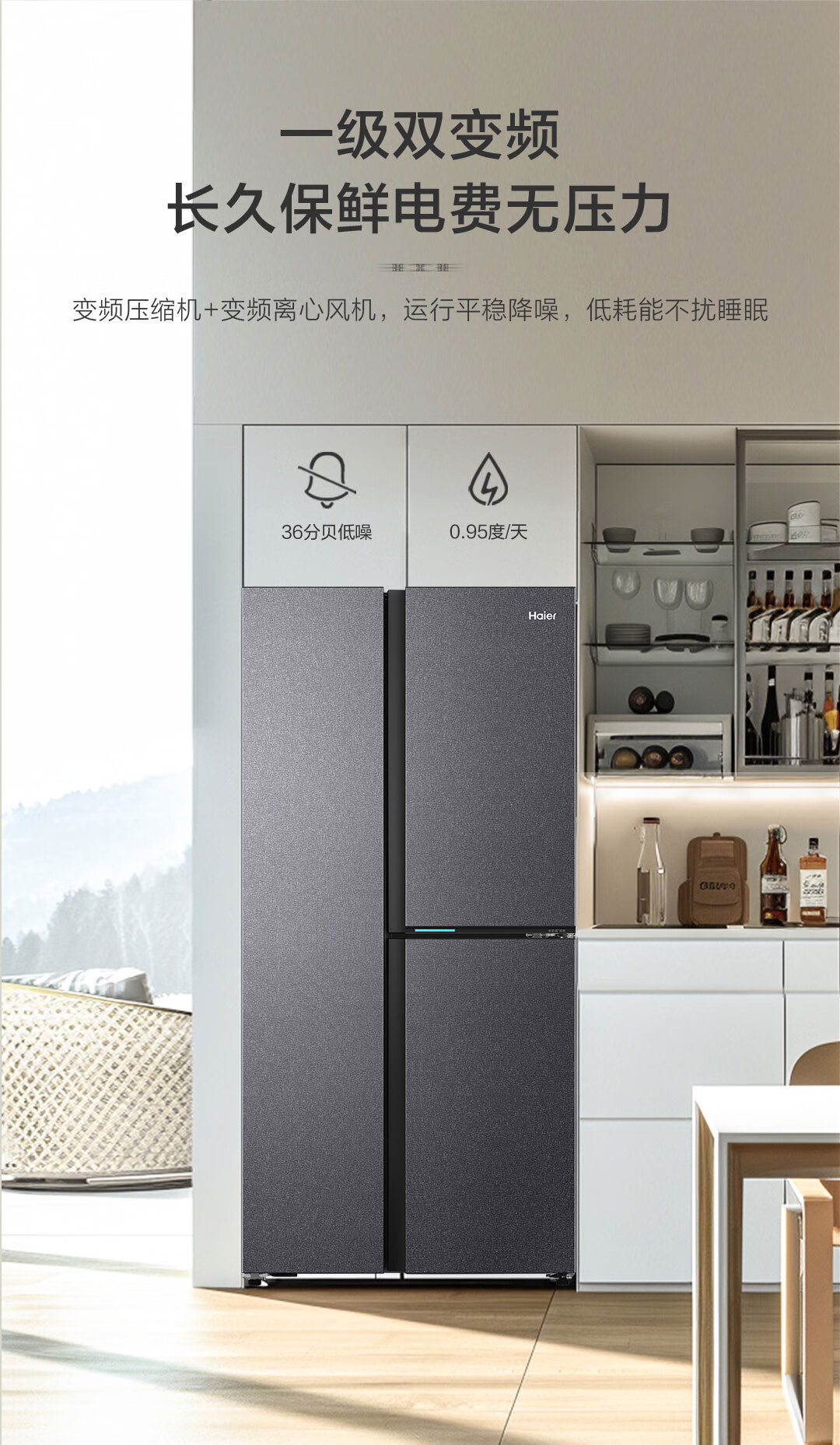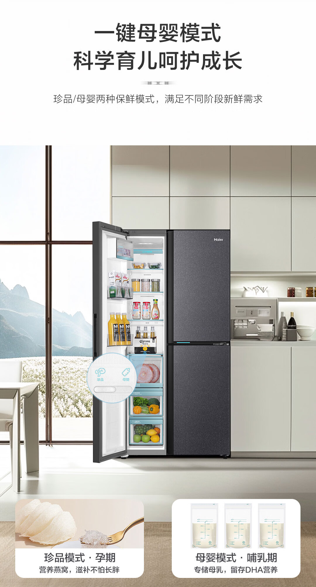 海尔(Haier)502升全空间保鲜594mm专业超薄零嵌入式双除菌侧T对开双开门家用电冰箱无霜BCD-502WGHFT1BS9U1