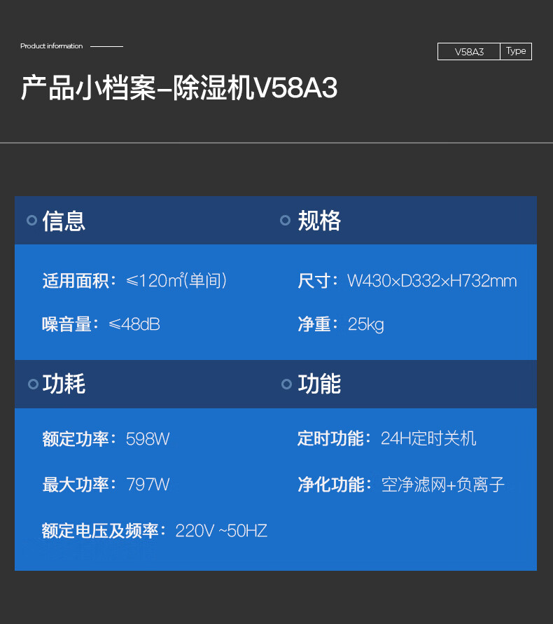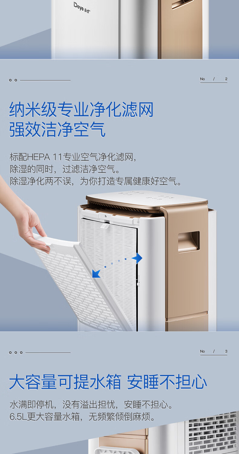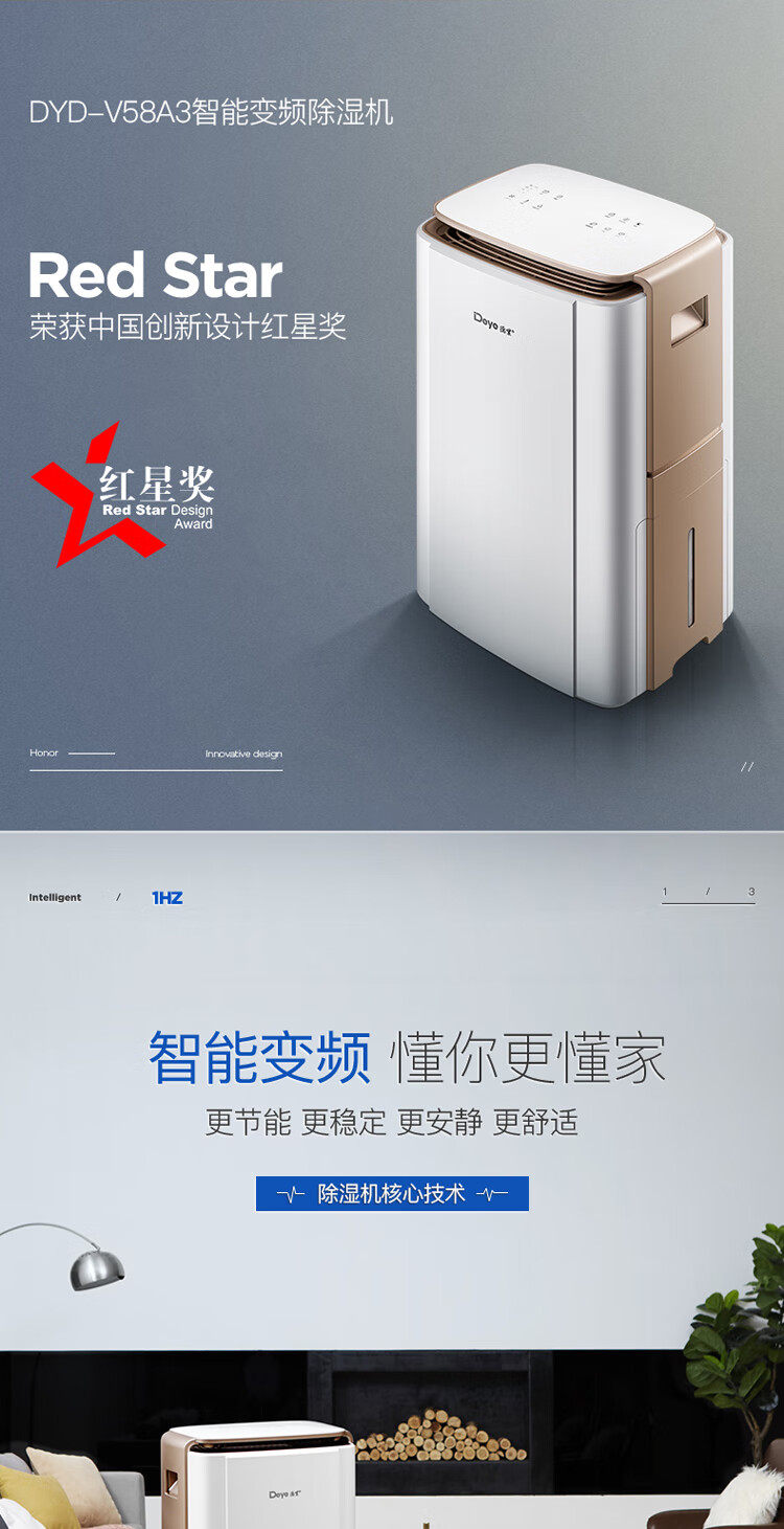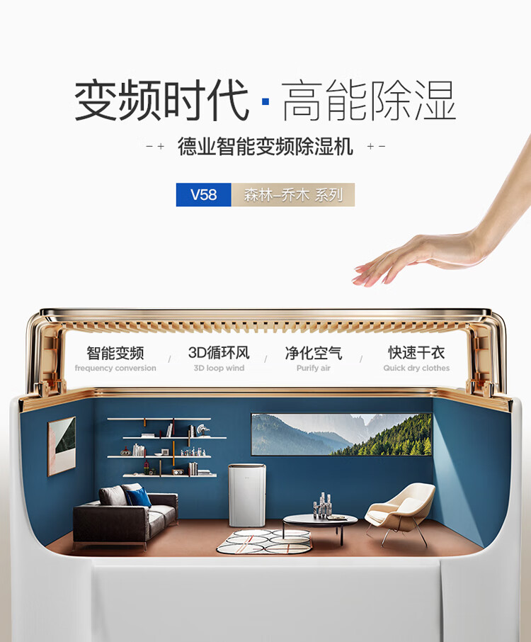 德业(Deye)除湿机/抽湿机 除湿量58升/天 家用地下室别墅干衣变频吸湿器 空气净化除甲醛DYD-V58A3