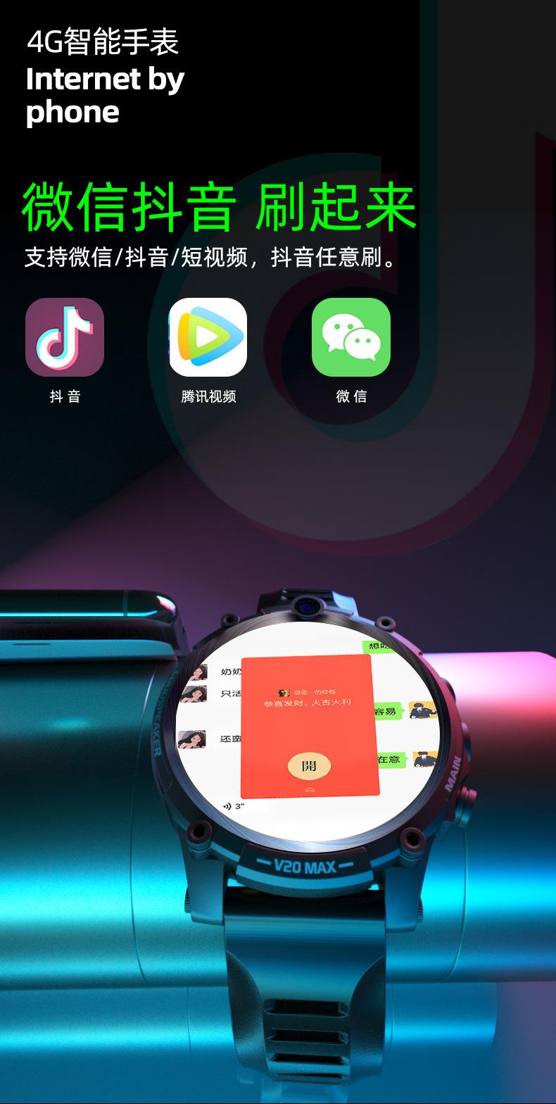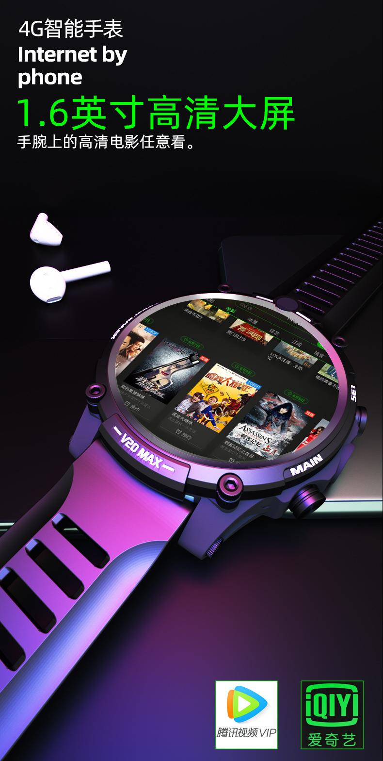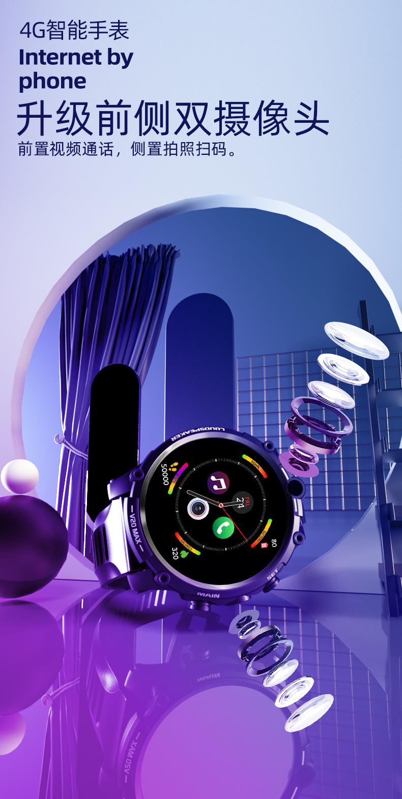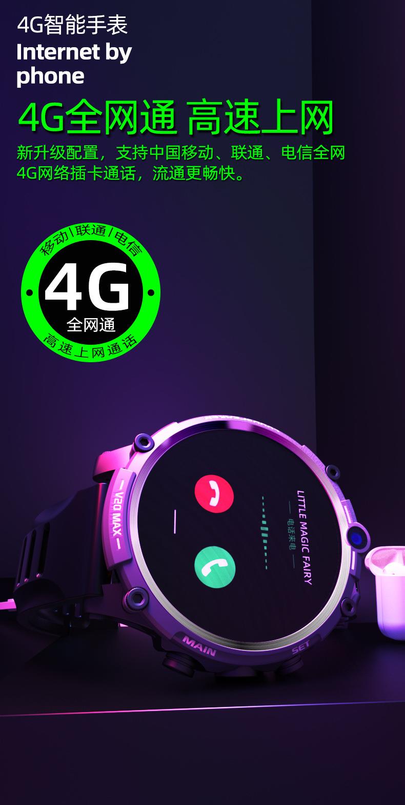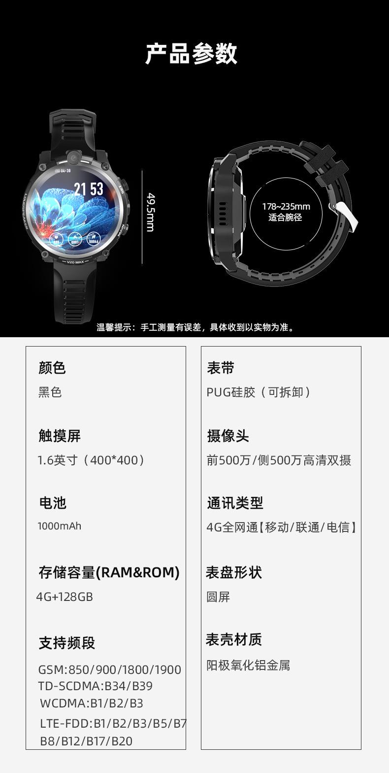 V20成人智能手表4G全网通插卡电话 4G+128G 双摄像头wifi上网定位